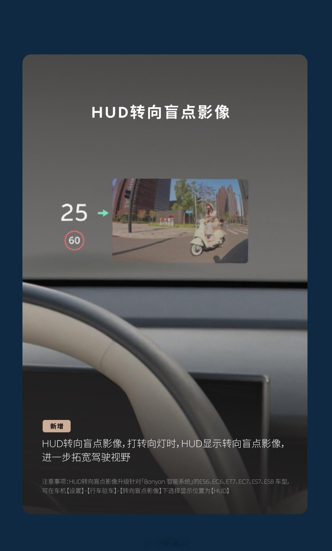 蔚来又升级了60多项功能,暂时还没收到推送,估计一周内全部升级完成,对于我们24款车主来说,我最期待在HUD上显示转向盲区影像,这下开车更方便了,不用转头看大屏了大v聊车蔚来