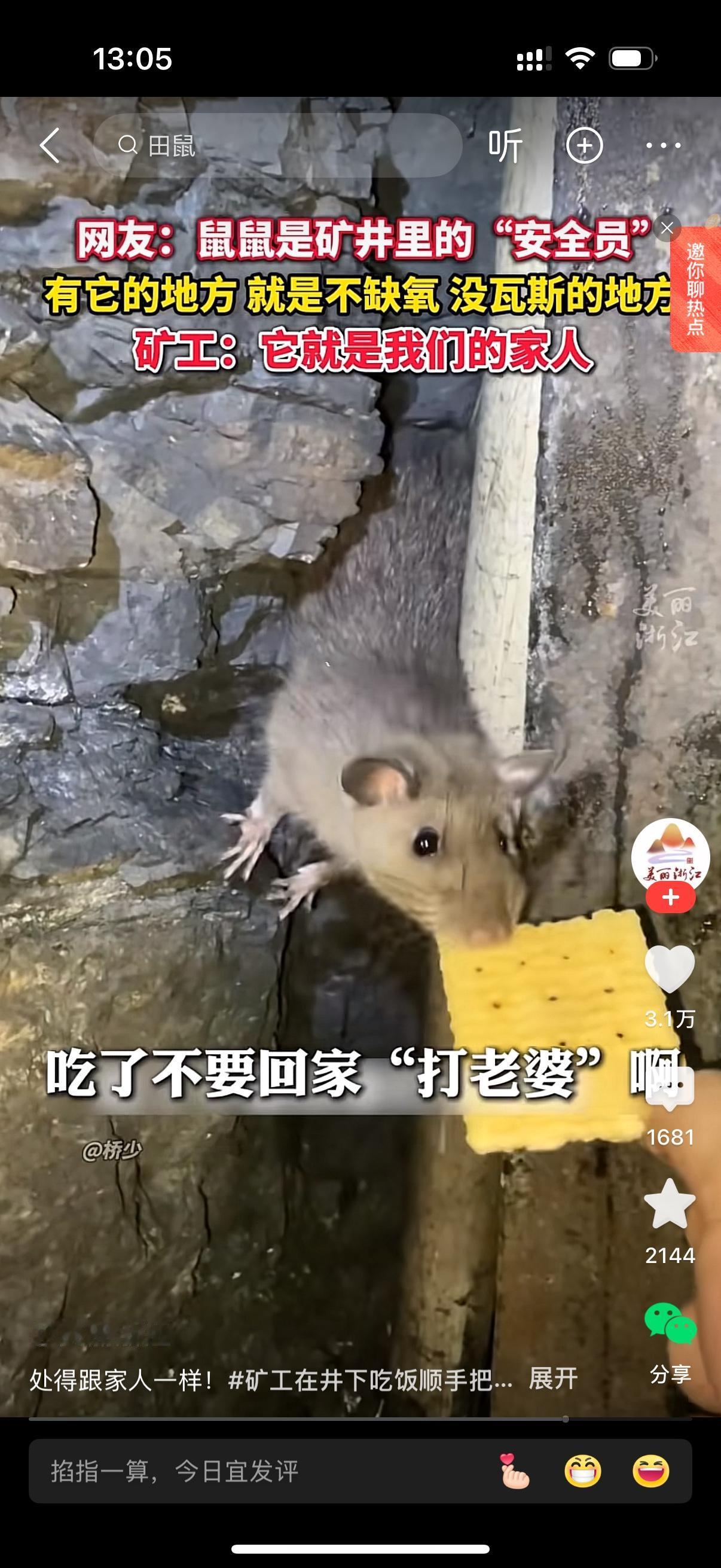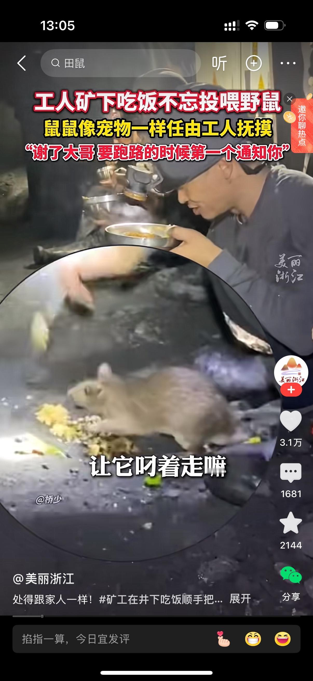 煤矿工人矿下吃饭不忘投喂老鼠。鼠鼠像宠物一样任凭工人抚摸。人鼠和谐共处的画面也就是在矿洞里了。据说老鼠是矿井里的“安全员”,有它的地方就是不缺氧,没瓦斯的地方。原来老鼠在就安全,怪不得矿工们对它宠爱有加。它们就是矿工的家人啊。