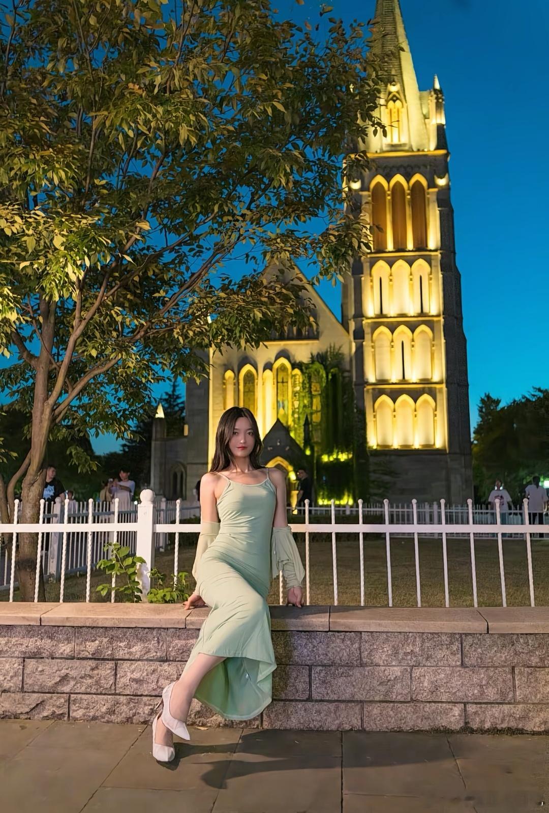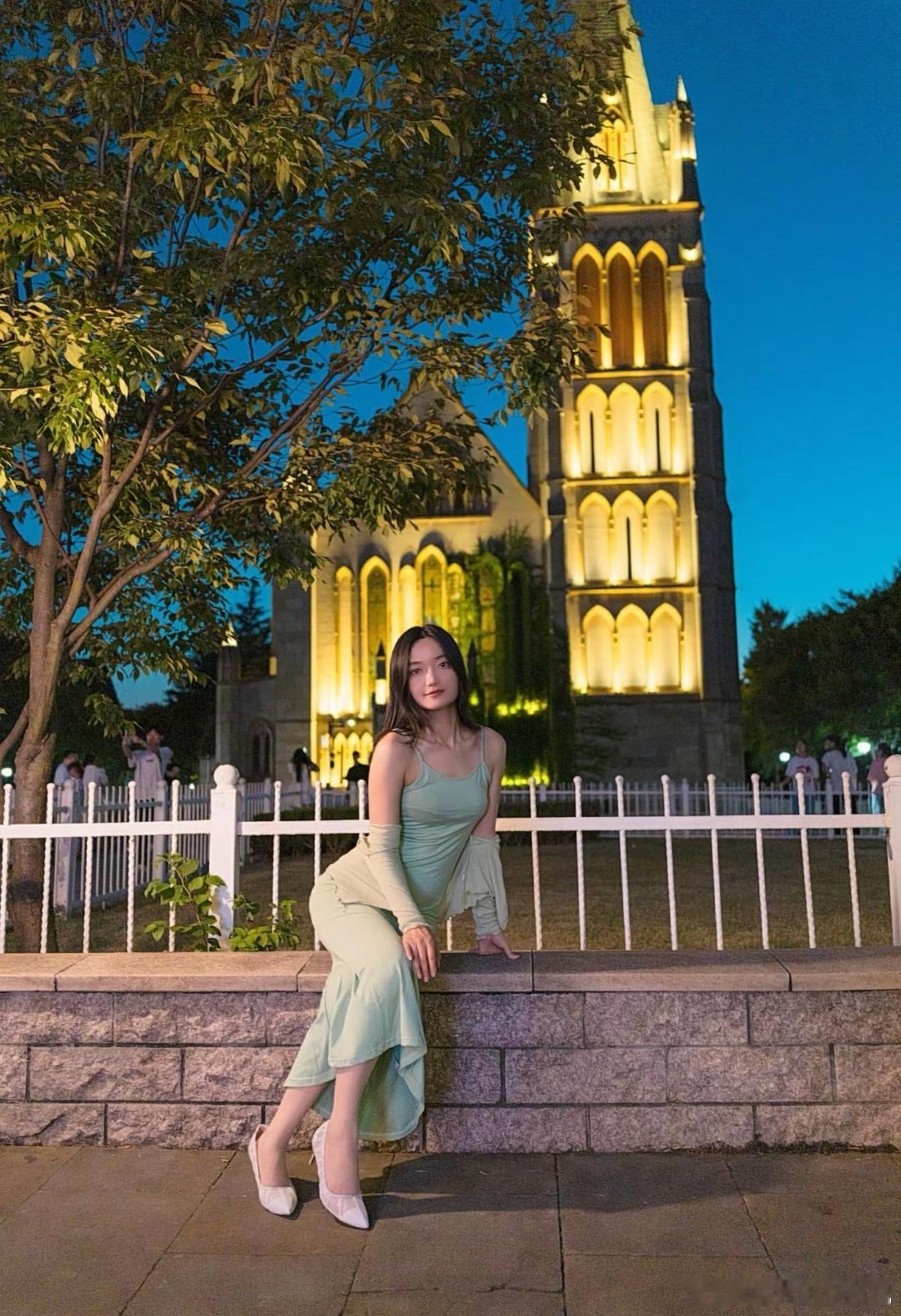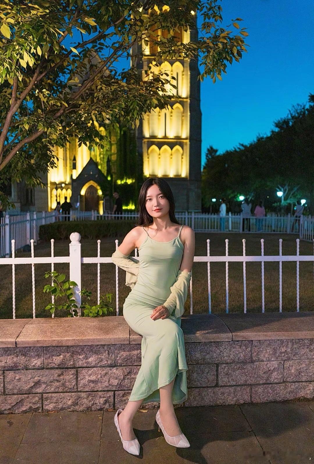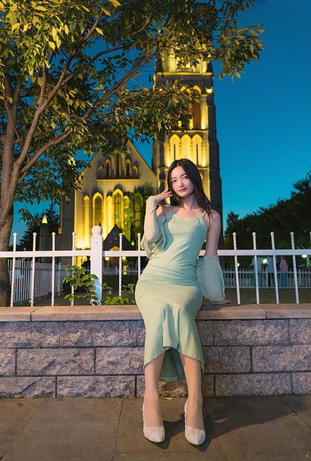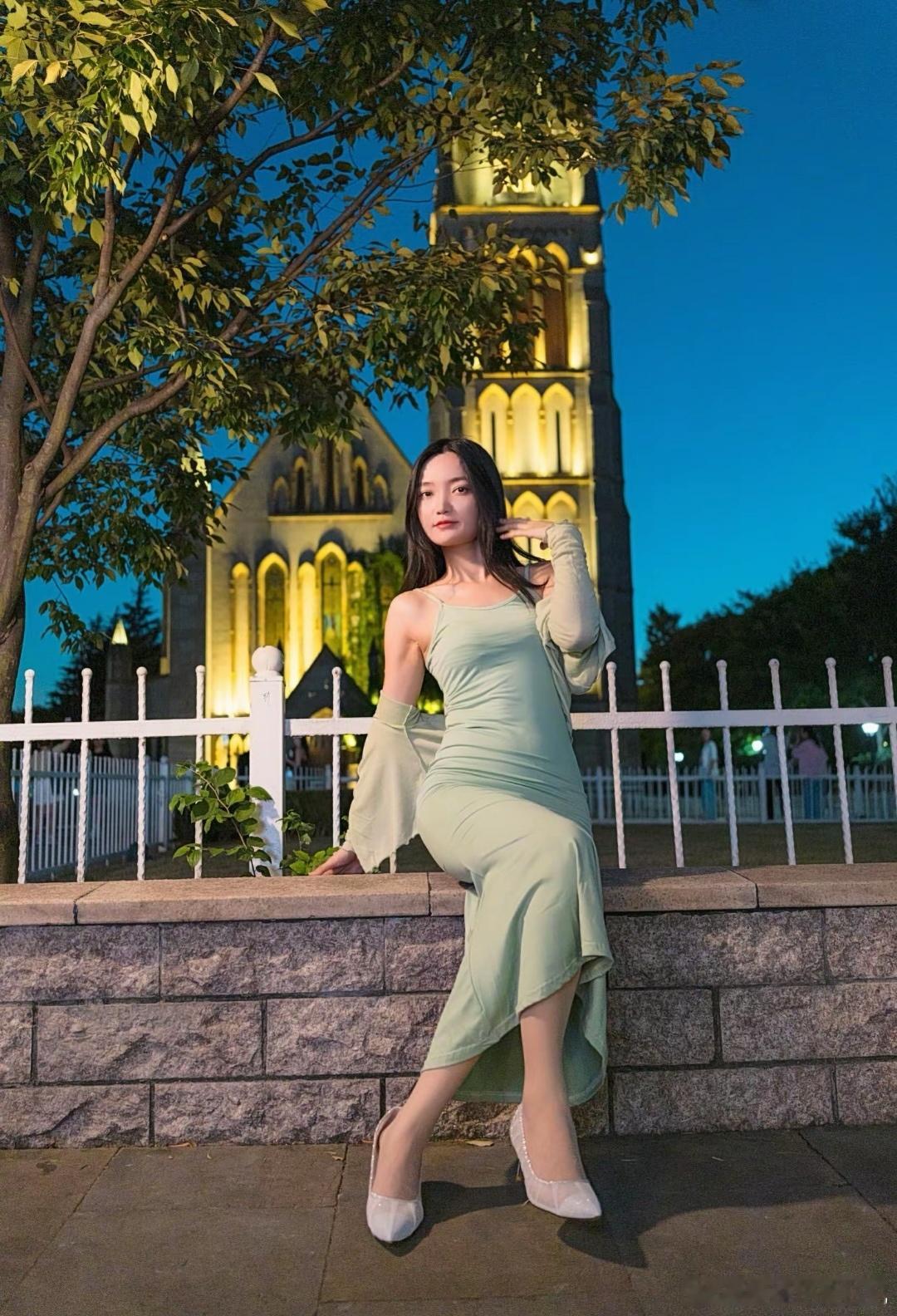 高跟美女图颜控正义日记的红包美女 绿色连衣裙配高跟鞋