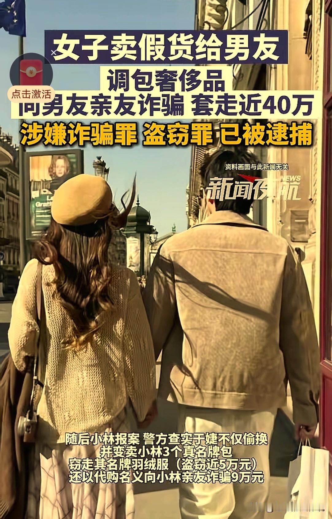 多金还恋爱脑?上海,男子认识一比他小3岁的女孩,女孩让他每月上交一半工资,男子照做了。女友说买名牌衣服、包包,他给的是真名牌的钱,买的却是假牌子,差价被女友私自拿去消费。更可怕的是,女友打着他的旗号,向邻居、同事、亲戚称可以代购名牌,结果大家收到的都是假冒货。这场骗局,男子被套走40万,女友说,根本没打算和他结婚,男子和家人愤怒报警! 小林通过朋友介绍,认识了一个比她小3岁的女孩于婕。 女孩漂亮,嘴还会哄人,两人很快就确立了恋爱关系。 小林对这段感情很认真,他是抱着结婚的目的去交往的。 没多久,于婕让他每月上交一半工资。 小林觉得,既然要一起过日子,把钱交给未婚妻管理合情合理。 从那以后,每到发工资的日子,小林都会准时把自己收入的一半转账给于婕。 不仅如此,他对女友可谓呵护备至。 每个周末,他都会开车,来回奔波2百多公里,专门去接于婕。 两人在一起,有时仅仅见面几个小时,小林主动给于婕转账5000元让她零用。 时间一长,小林父母却看出了端倪,母亲称,女孩子总是变着法子让儿子给她买名牌衣服和包。 东西买回来后,他们怀疑可能是假货。 但出于对儿子感情的尊重,他们不想过多干涉,只是把疑虑埋在了心里。 这些疑点,最终还是由小林自己发现了。 小林把女友送给他的,以及他买给女友的一些名牌物品,拿去进行专业鉴定。 鉴定报告出来时,结果令他难以接受,所有送检的物品,无一例外,全都是假货。 这个结果像一盆冷水,彻底浇醒了小林。 他开始意识到,自己交往了两年的女友,可能远非他想象中那么简单。 而这仅仅是个开始,更让小林震惊的事情还在后面。 于婕不仅在他这里以次充好、售卖假货,甚至还打着他的名义,在外面进行诈骗。 于婕向小林的邻居、同事,以及朋友宣称,自己有渠道,可以帮忙代购价格优惠的正品品牌。 人们基于对小林的信任,也相信了于婕的话,纷纷将钱款交给她,委托其代购。 事后统计,于婕以此方式收取了他人共计二三十万的钱款。 然而,她寄给这些人的,全是仿冒的假爱马仕包。 亲戚朋友收到劣质的假货,找上门来时,于婕便将所有责任都推给了小林。 她说自己只是中间人,问题出在小林找的渠道上,试图撇清自己的关系。 小林在承受情感背叛的同时,还莫名其妙地背上了欺骗朋友、同事的恶名。 而女友的疑点越来越多,小林终于报警。 他和父母一起来到派出所。当时的小林神色恍惚。 小林母亲情绪也非常激动,向警方陈述,儿子被女友欺骗和偷窃。 小林经初步计算,他被骗取的财物,加上各种经济损失,总计40万元。 警方接到报案后,迅速展开了调查。 并于婕的衣柜里,发现了小林此前报案声称丢失的一件名牌羽绒服。 在确凿的证据,于婕不再隐瞒,坦白了更多的事情。 她承认,自己偷走了小林那件价值不菲的羽绒服。 还用了“偷梁换柱”的手法,将小林的3个真名牌包,偷换成了外观相似的高仿假包, 然后卖掉,所得款项揣进了自己的腰包。 于婕称,她的收入不高,加上小林每月上交的那部分工资,仍无法支撑她的高消费。 她不但从小林那里骗取钱财,还向小林的表姐,和他们的共同朋友,虚构自己有代购渠道,实施诈骗。 当事情败露时,她把所有问题都推到小林身上,自己脱身。 小林曾委托她帮忙给自己报一个补习班。 她虚报了补习班的价格,并伪造了缴费凭证,将5万元的差价私吞。 小林出钱让她买的东西,绝大多数,都是她从各种渠道买来的假货。 价格最高的是一块冒充名牌的手表。 这场骗局,其实漏洞不少。但由于小林近乎盲目的信任,竟然持续了整整两年。 小林称,他太信任女友了,觉得除了自己的生命不能给她,其他的一切几乎都可付出。 而于婕从一开始,就存在身份上的造假和隐瞒。 她从来没真正想要和小林结婚,这段关系,食之无味,弃之可惜。 根据警方侦查,截至目前已经查证,于婕涉嫌盗窃的金额接近5万元。 加上她偷走小林的个人物品,涉嫌诈骗的金额约为9万元。 她以代购名义,诈骗小林邻居、同事等人的二三十万元,仍在进一步核实。 《刑法》第二百六十六条规定:诈骗公私财物,数额较大的,处3年以下有期徒刑、拘役或者管制,并处或者单处罚金; 数额巨大或者有其他严重情节的,处3年以上10十年以下有期徒刑,并处罚金…… 于婕谎称买名牌却用假货骗取差价,虚构代购渠道让小林及他人交钱却发假货。 甚至伪造缴费凭证私吞钱款,这些都是“用欺骗手段骗取财物”的行为。 于婕诈骗金额累计达数十万元,属于数额巨大,符合条款中“处3年以上10年以下有期徒刑,并处罚金”的情形。 即使她和小林是恋爱关系,法律不会因为双方的特殊关系而免除责任。 女孩借恋爱诈骗钱财,最终将是失去长达数年的自由。 目前,于婕因涉嫌诈骗罪、盗窃罪,被依法逮捕。 对此你怎么看?