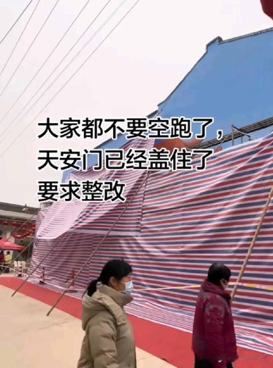 来自陕西眉县的消息,前往八寨村打卡拍照“天安门”游客们,这两天不要去了, 去了也白跑一趟,天安门画作已经被彩条布盖住了, 据当地人反映,好像是有关方面要求整改,近日,当地正在开展城乡环境整治活动,专门治理乱贴乱画等问题, 刚开始火的时候,有网友就说“过不了几天就会被封上了”,没想到这句话真应验呐,你们谁明白到底哪里出了问题? 天安门墙绘 天安门手绘 乡村天安门 天安门水墨画 天安门城墙画 天安门观景台