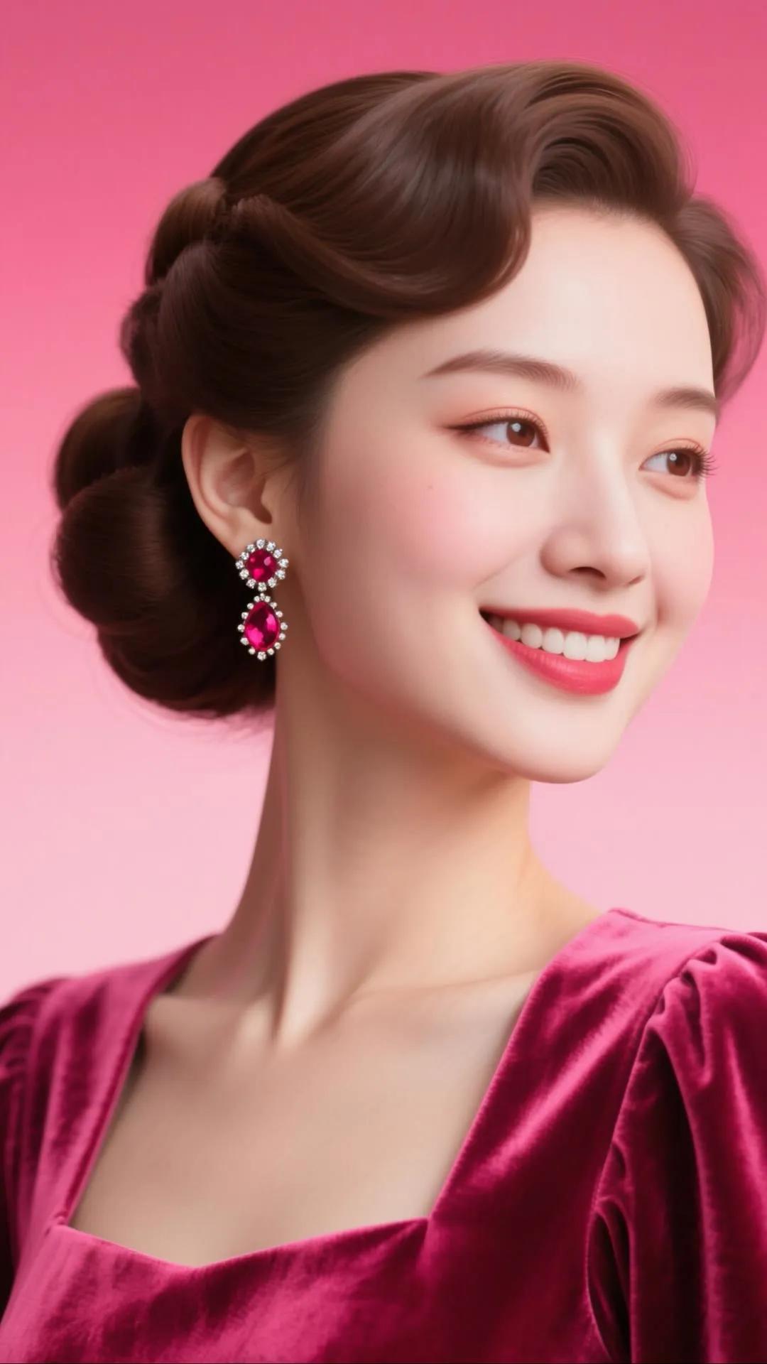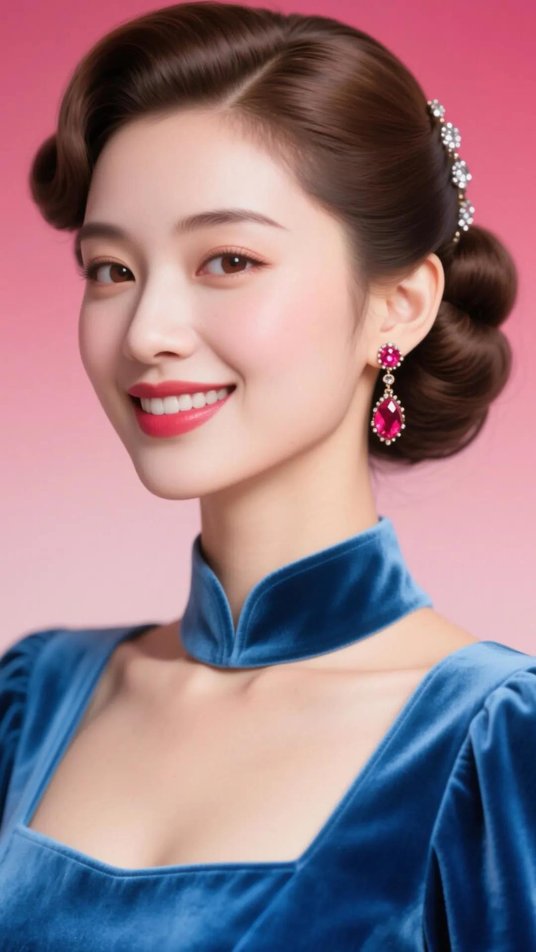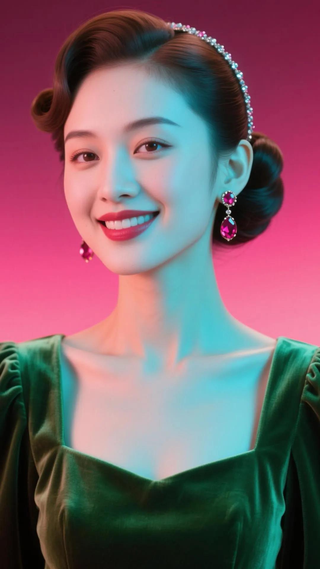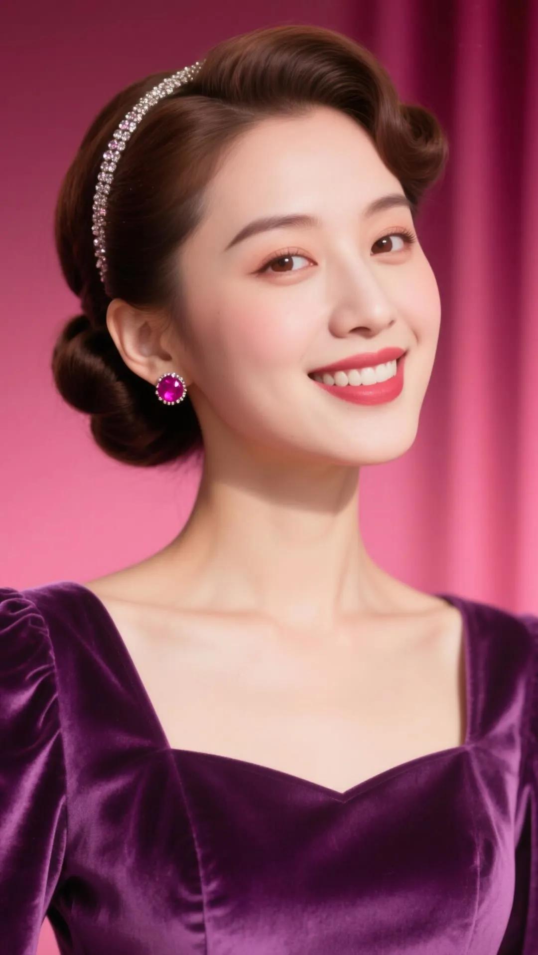 优雅复古风,紫色礼服搭配闪亮发饰,甜美笑容,尽显魅力!💄✨