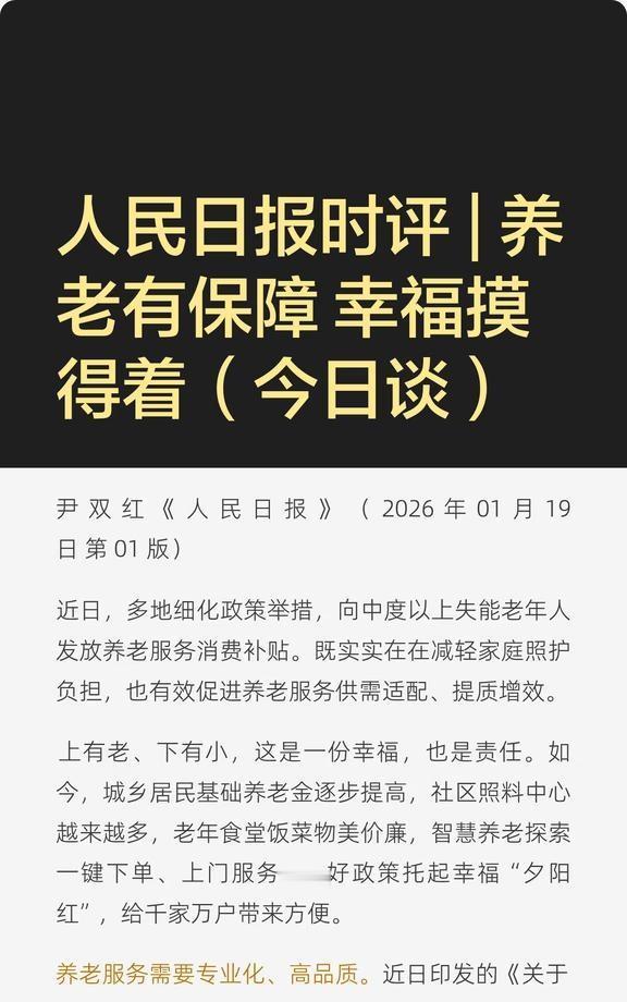 人民日报时评 | 养老有保障 幸福摸得着(今 城乡居民养老 智慧养老 年轻人养老