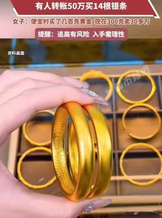 金首饰价格突破1620元/克! 据媒体1月28日报道,今日黄金挂牌价格已经突破1620元每克,太令人不可思议了。 我记得我在30年前,为我的老伴弥补结婚而购买了金项链,金戒指,金耳环,一共是30.8克,记得当时的金价是100元/克,共计花了30.8×100=3080元钱,当时是一笔家庭不小的开支,我的老伴为此心痛了好多年啦! 若是拿到现在来购买,30.8克的黄金饰品,又需要多少钱呢? 按照今天公布的黄金价格是1620元/克来计算,1620×30.8=49896元钱。 比三十年前黄金价100元/克,那么每克黄金饰品贵了1620-100=1520元/克,这黄金饰品价格已经上涨了1520÷1620=0.938272=93.8272%,已经贵了1520×30.8=46816元。 我把这账算给我老伴儿听,我老伴说,过去花啦3080元钱,若是拿到今天来买,这钱就得花46,816元,上涨了十几倍,那才真是心痛啊。她告诉我,幸亏当时买了,要是现在买,那就可买不起了!