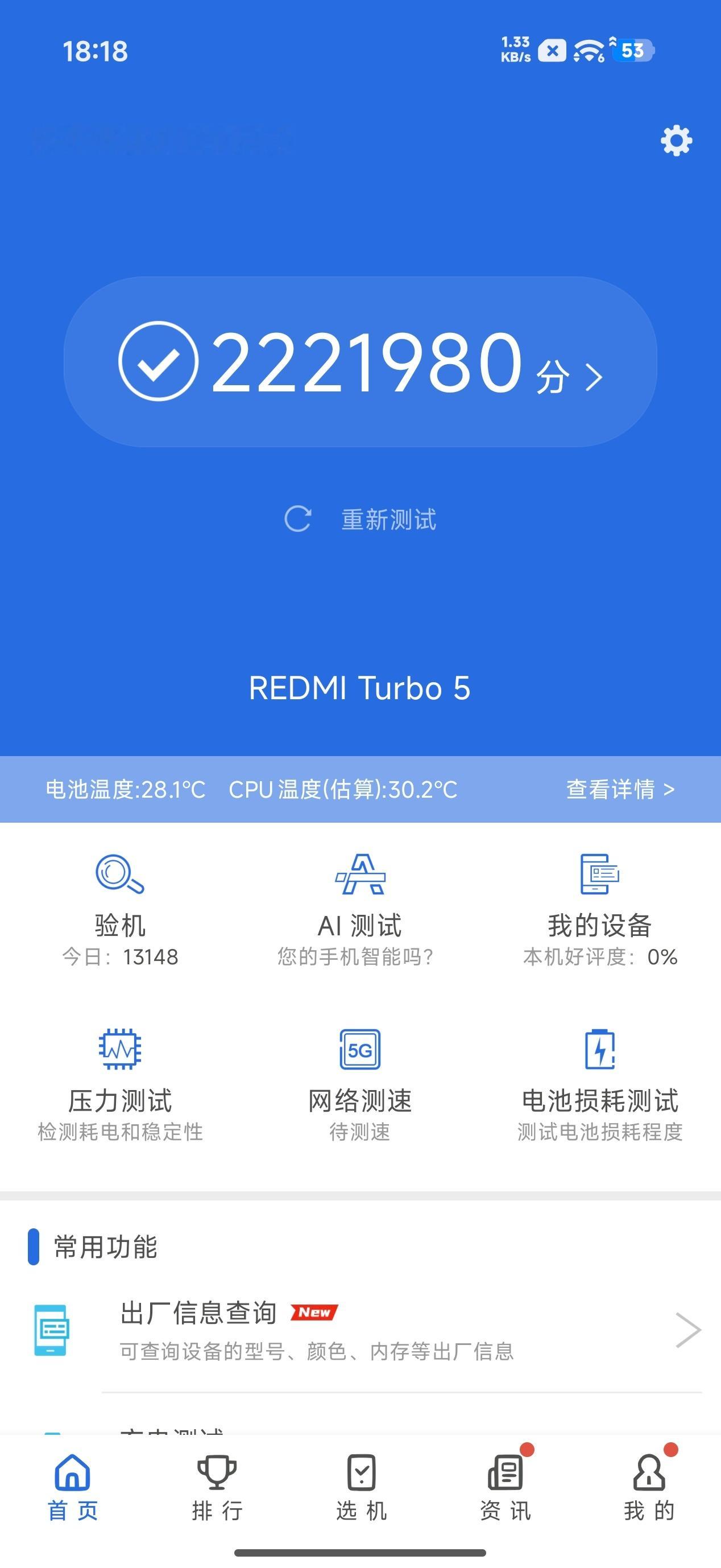 我们对REDMITurbo5标准版进行了性能测试。REDMITurbo