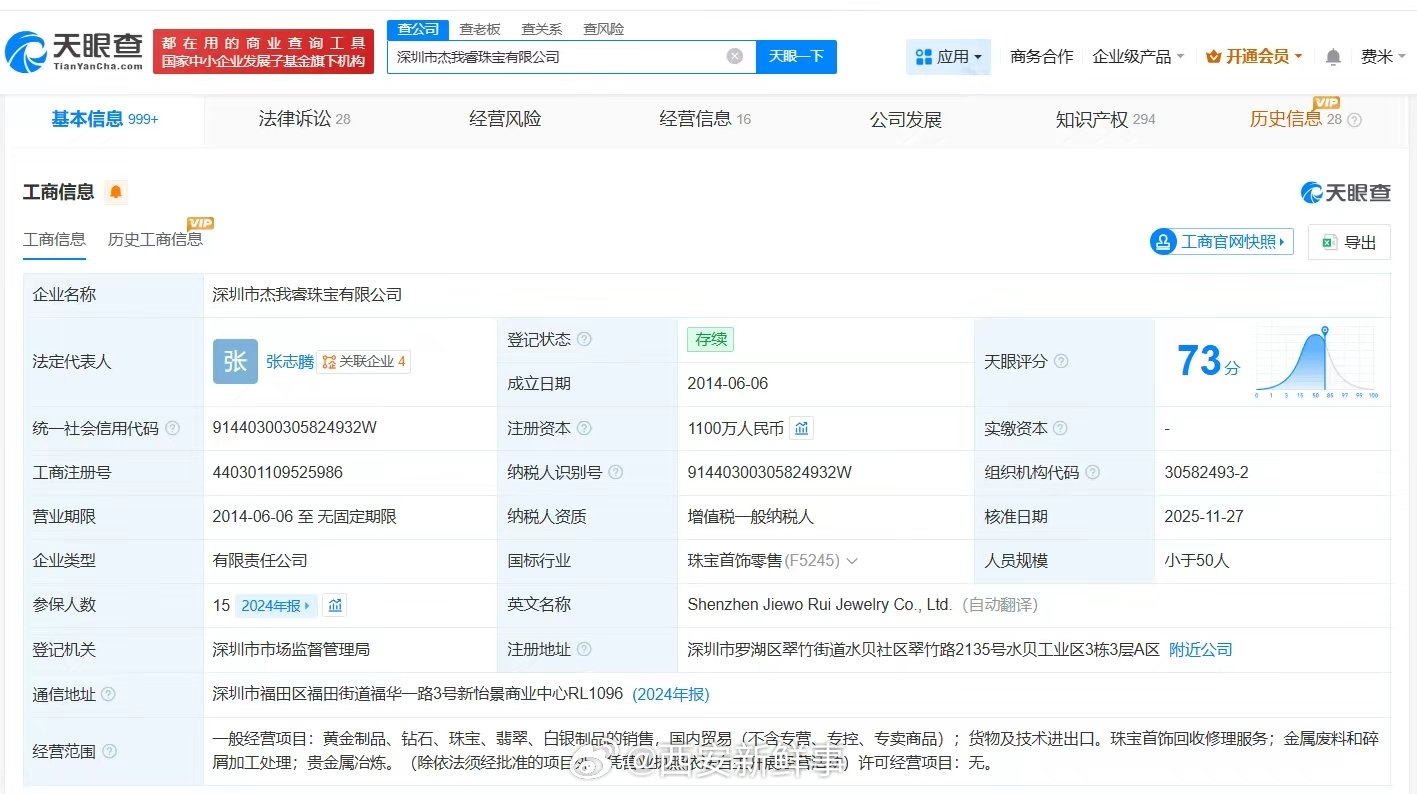 【杰我睿自去年7月多次被执行】张志腾名下除杰我睿其余企业均已注销据媒体报道,针对杰我睿及多个关联的线上平台出现兑付困难的问题,1月28日,罗湖区工作专班发布情况通报称,目前小区第一时间组建工作专班介入,督促企业履行主体责任,目前,杰我睿负责人及相关核心管理人员均在岗,积极开展与投资人沟通、资产梳理和兑付等工作。杰我睿 天眼查工商信息显示,涉事公司深圳市杰我睿珠宝有限公司成立于2014年6月,法定代表人、董事、经理均为张志腾,注册资本1100万人民币,经营范围包括黄金制品、钻石、珠宝、翡翠、白银制品的销售等。股东信息显示,该公司由张志腾、陈长林共同持股。天眼风险信息显示,去年12月,该公司及张志腾被执行4万余元。历史被执行人信息显示,自去年7月以来,该公司已被多次执行。任职信息显示,张志腾名下关联4家企业,目前仅深圳市杰我睿珠宝有限公司处于存续状态,其余3家企业均已注销。