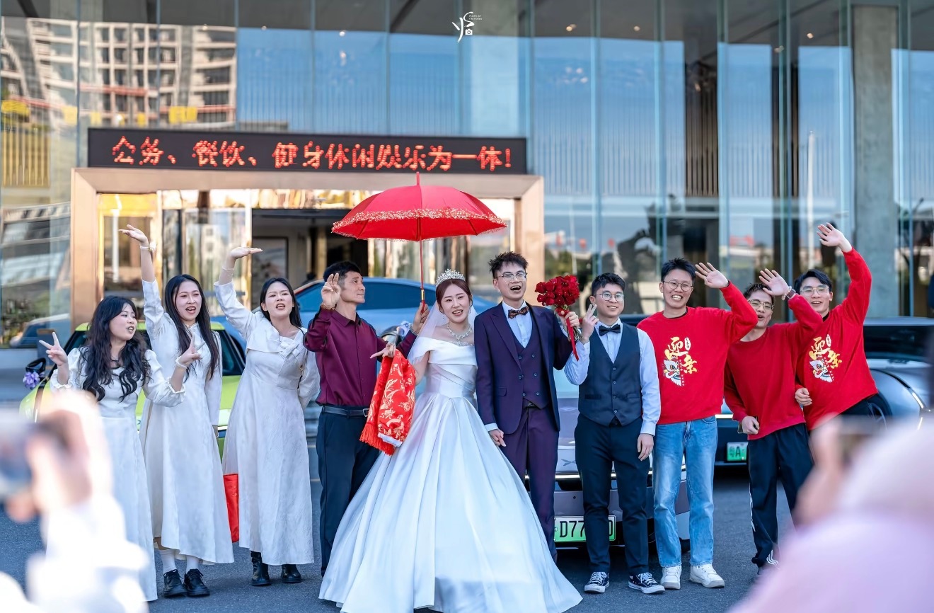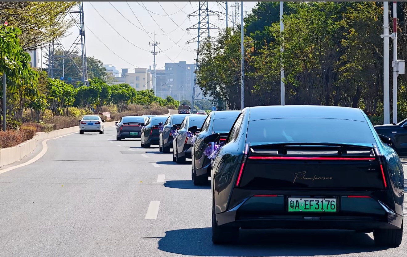 年轻人就有年轻人的活力,刷到婚车车队全部都是小鹏 P7,这估计是本地的车友会支持。既省了婚车钱又能跟一群有意思的人在一起~我也建议朋友们结婚婚车,直接选择自己喜欢的车型同城号召车友会集合~又省钱又好玩