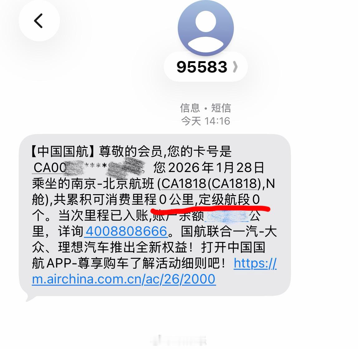 不知道怎么得罪国航了,第一次遇到给0积分0里程的情况