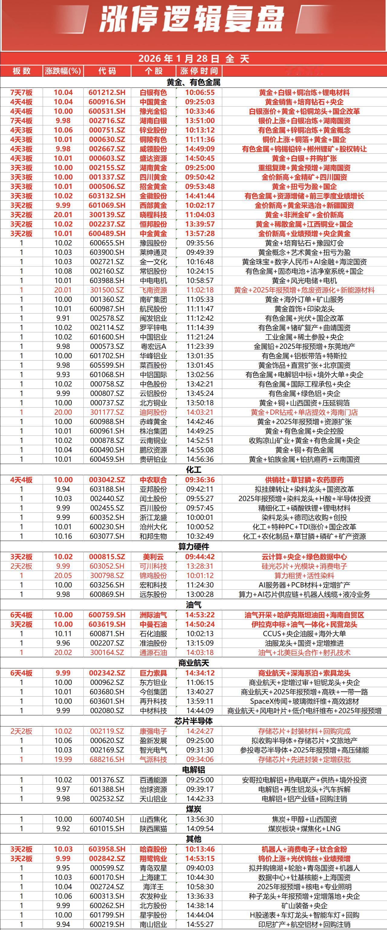 1.26复盘:黄金有色领涨,主线轮动节奏清晰
