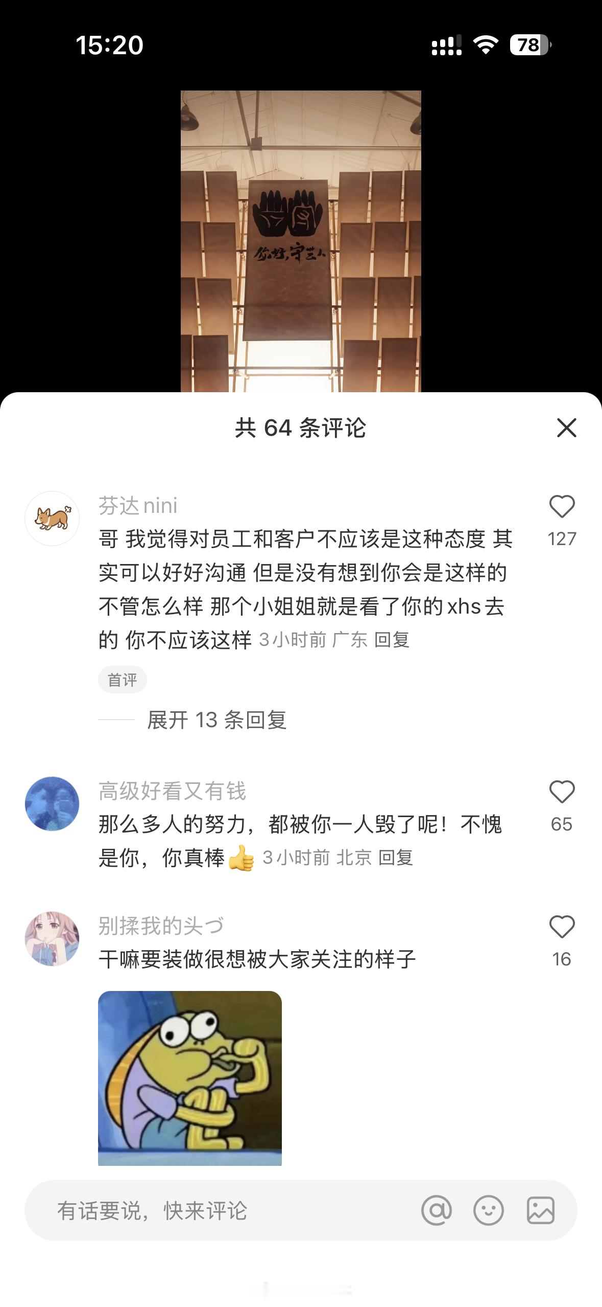 《上城士》做快闪,说欢迎大家去,有人去了后却被创始人伦思博怼了,说不需要人去打卡之类现在伦思博评论区都在嘲笑他