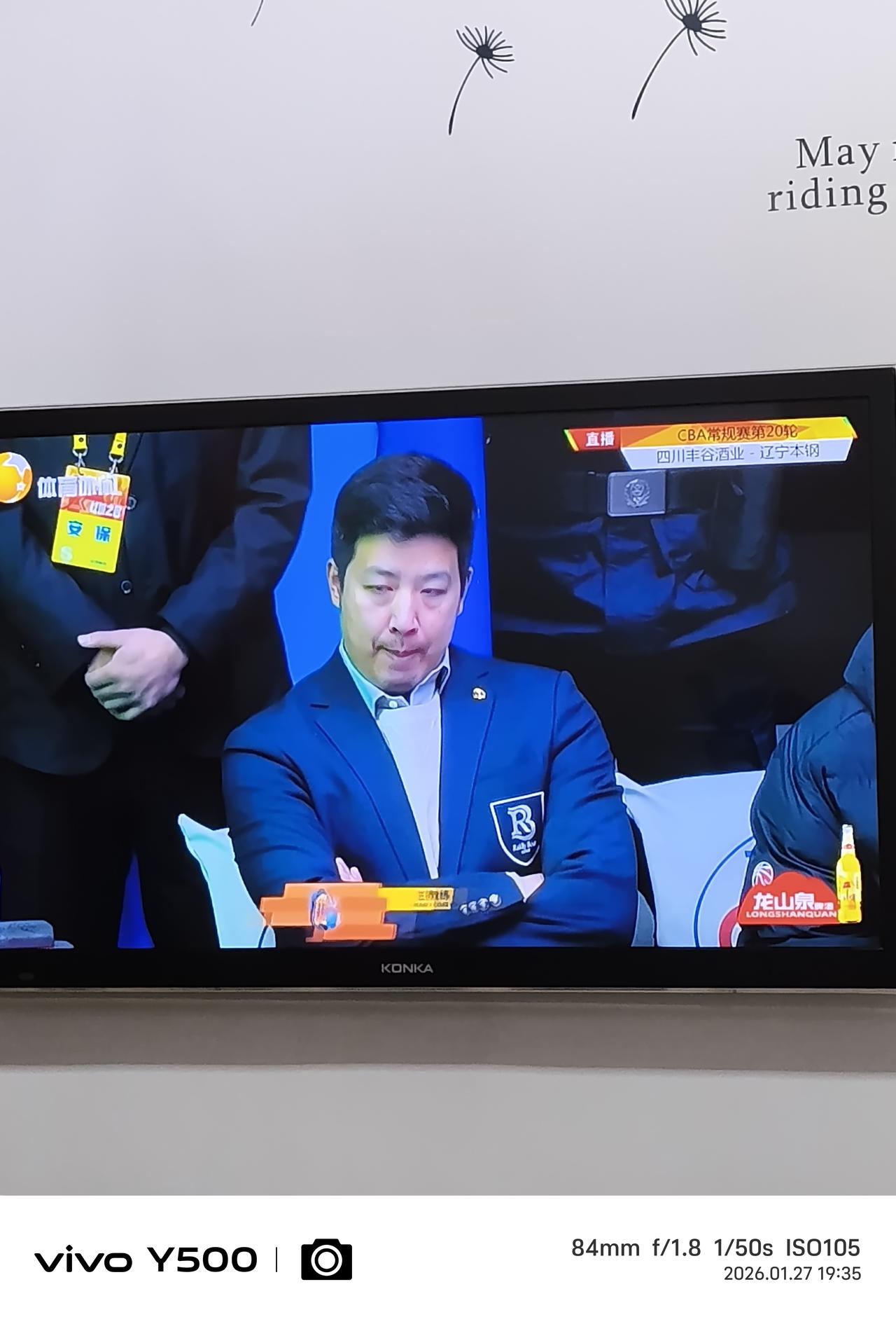 杨城——现任四川丰谷酒男篮主教练,正在现场指挥,他的弟子们和辽宁男篮对阵,镜头捕