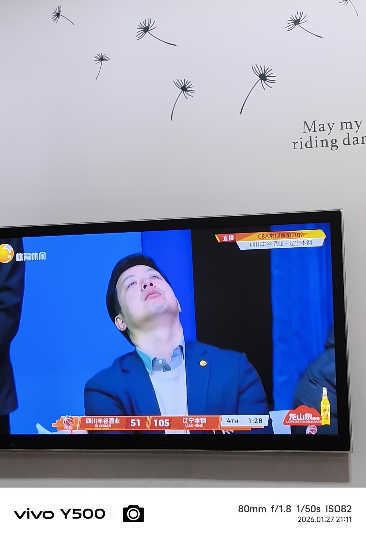 杨城——现任四川丰谷酒男篮主教练,正在现场指挥,他的弟子们和辽宁男篮对阵,镜头捕捉到,他痛苦无奈的表情,看来他真是发愁啊!