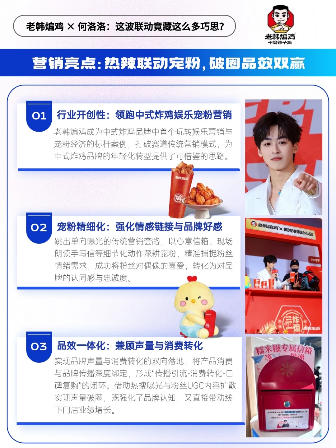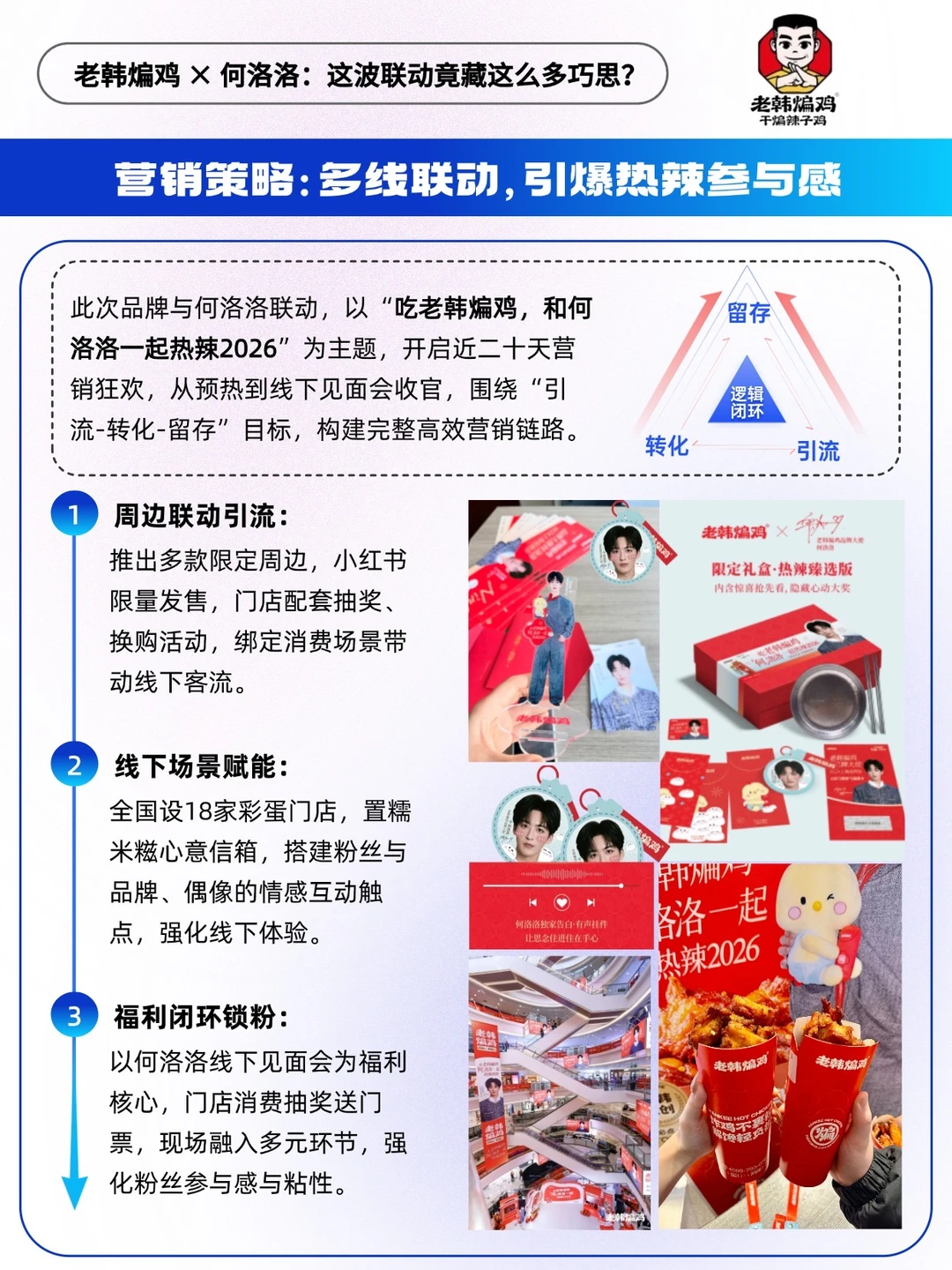 ✅本次联动以“吃老韩煸鸡,「何」洛洛一起热辣[二R][零R][二R][六R]”为主题,开启近二十天营销狂欢,链路闭环设计扎实⬇️