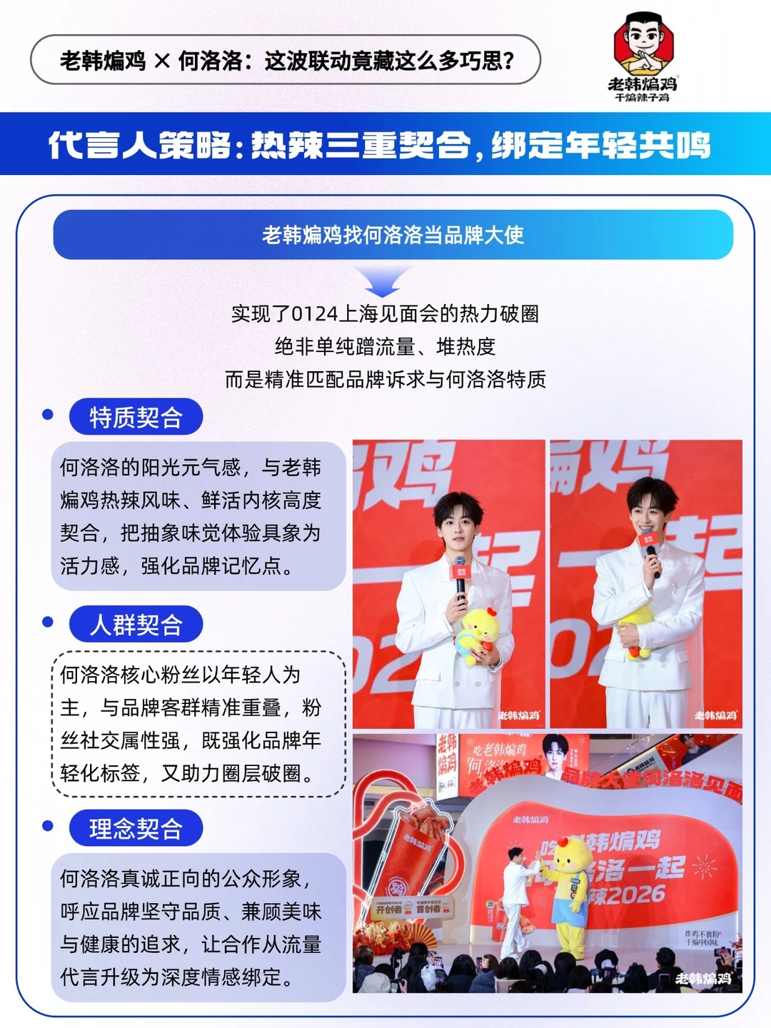 老韩煸鸡与品牌大使何洛洛在上海中山公园龙之梦购物中心举办的「[零R][一R][二R][四R]上海见面会」刚过去不久,热度仍在社交平台持续发酵。