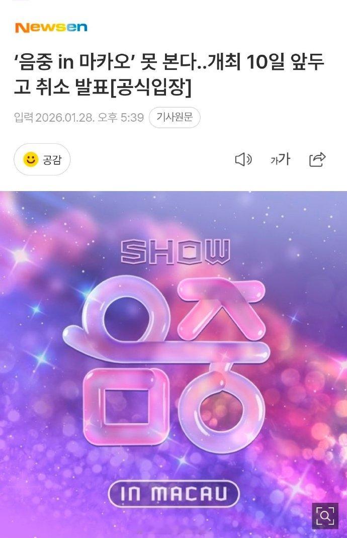 MBC取消澳门音中在举办前10天,MBC宣布取消澳门《音乐中心》演出:“综合审