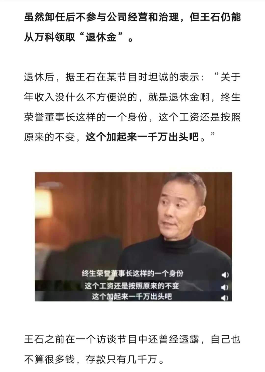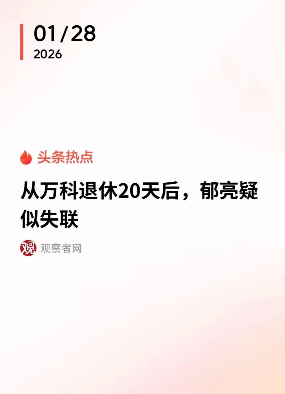 今天头条的爆炸新闻,万科前董事长郁亮失联了,万科创始人王石的好日子也到头了?!(图1-2) 失联就是失去联系喽,亲戚朋友都找不到。99%是被国家的纪律部门控制了,只有1%的可能跑到国外去了! 大家知道王石担任万科董事长的时候,就培养郁亮做接班人,他做过总裁。后来,王石退休了,郁亮就接任董事长。两个人年薪都是上千万一年,为了感谢王石,王石退休了,郁亮安排王石退休金还是上千万!(图3) 如果公务员,做到国家主席也不可能上千万的退休金![捂脸] 现在万科不是王石、郁亮两个人的万科,是国有企业控股的万科,看到万科的财报2025年前三季度万科的销售额是163亿,亏损280亿,深铁集团2025年借款万科326亿! 看来万科的窟窿是无底洞啊,扔再多钱进去也炸不到鱼! 郁亮怎么样?不敢评价,但是万科的创始人王石20年前对他确实相当佩服,不管是万科的成功,还是王石个人品牌的成功,如他攀登喜马拉雅山也好,到处演说也罢,对他是相当崇拜。那时国内很多中小企业都组团去万科学习!我们作为创业者,也经常买跟他相关的书拿来学习。 但是后来王石迎娶田朴珺女士,对他的形象就大打折扣,退休了还搞美容、假发,越搞越不像男人,对他就越来越失望。(图4) 想起王石他创业的时候,他的原配是王江穗女士,王江穗的父亲是王宁,是广东省上世纪80年代到90年,广东省省委副书记兼政法委书记! 80、90年代,在广东一个公安局的警员都是相当牛逼,我们在东莞,2003年看到一个治安仔都担惊受怕,随时怕被治安长欺负。 一个男人要成功,创业的时候相当困难,要建立一个像万科这么伟大的企业更加困难,但是成功以后就抛弃了原配,忘记了牛夫人,迎娶起了小甜甜。 一般这种男人都不会有好结局!苍天饶过谁?! 做人还是要厚道,永远要不忘初心! 大家猜一下,郁亮、王石的结局会如何? (图片来源网络。如有侵权,请联系删除)
