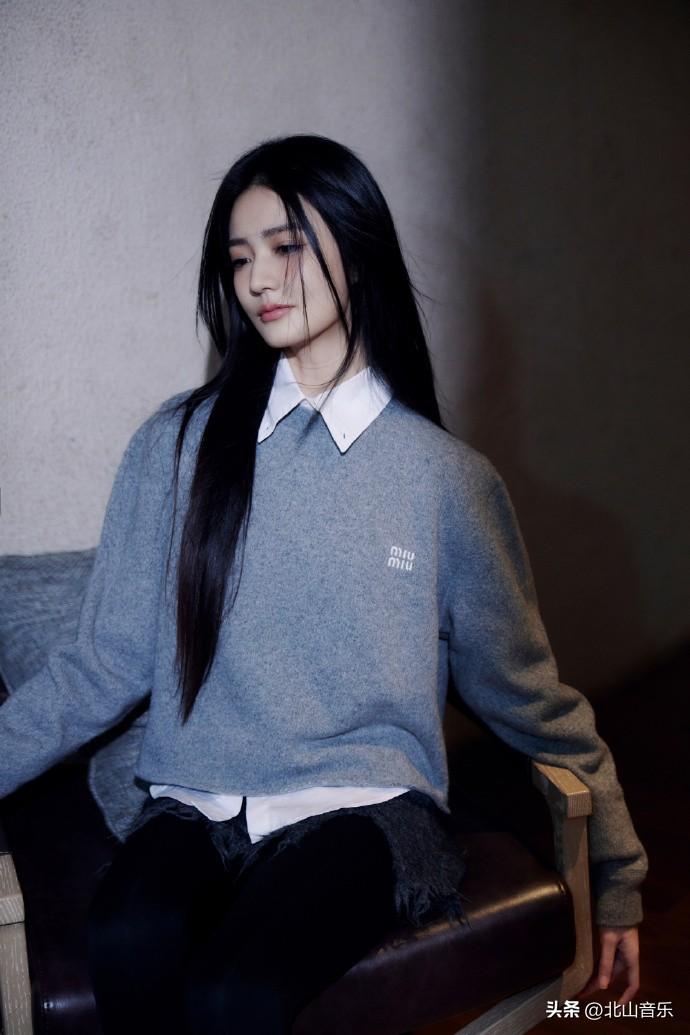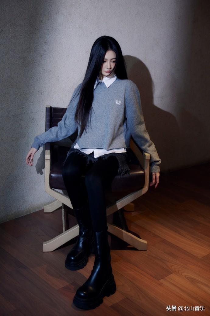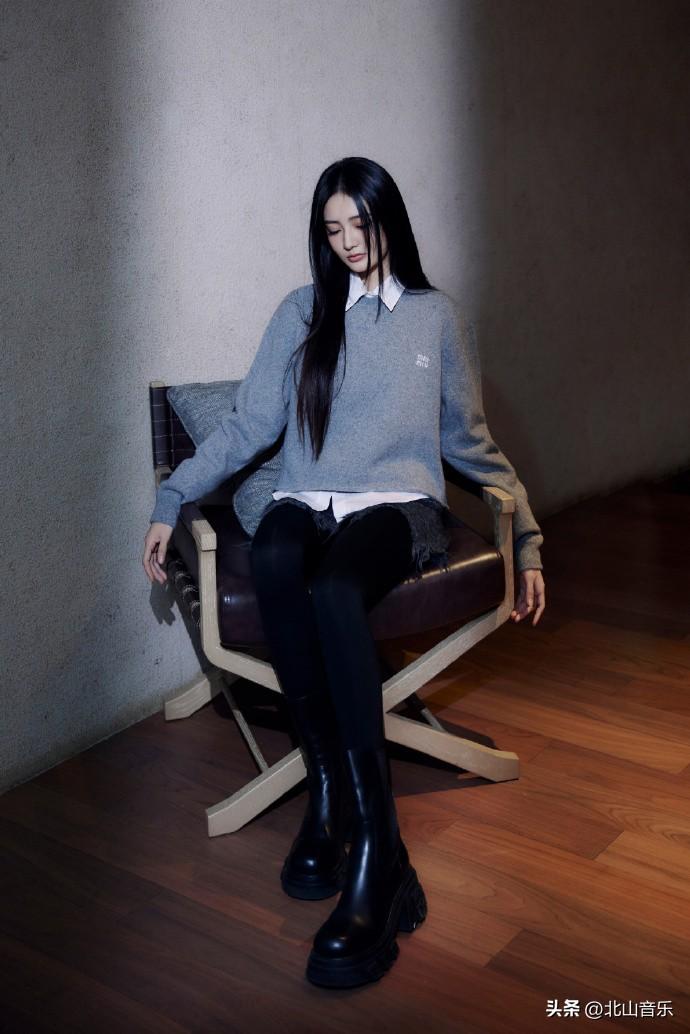 徐璐秋日灰色毛衣穿搭:镂光落影,静美如画。