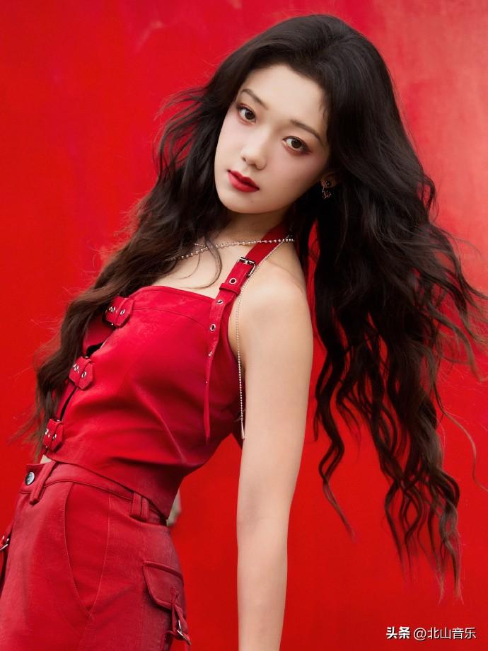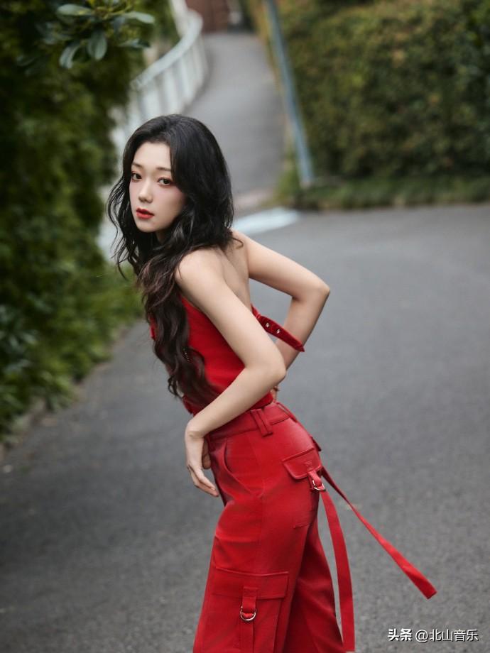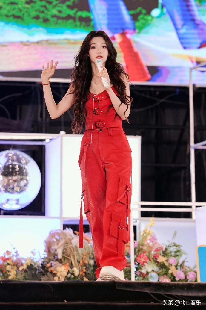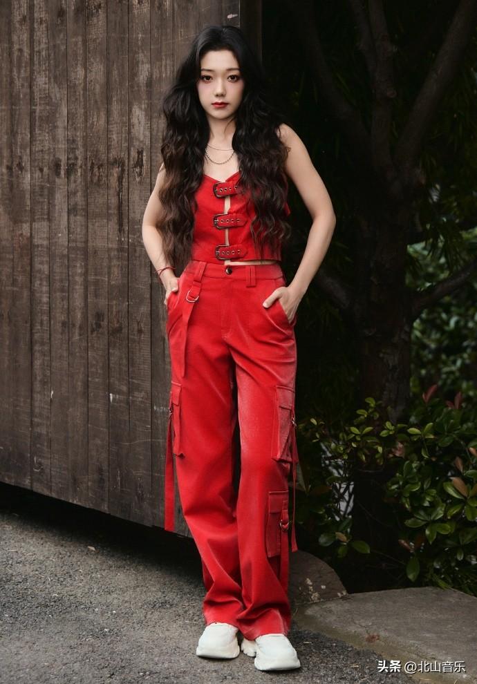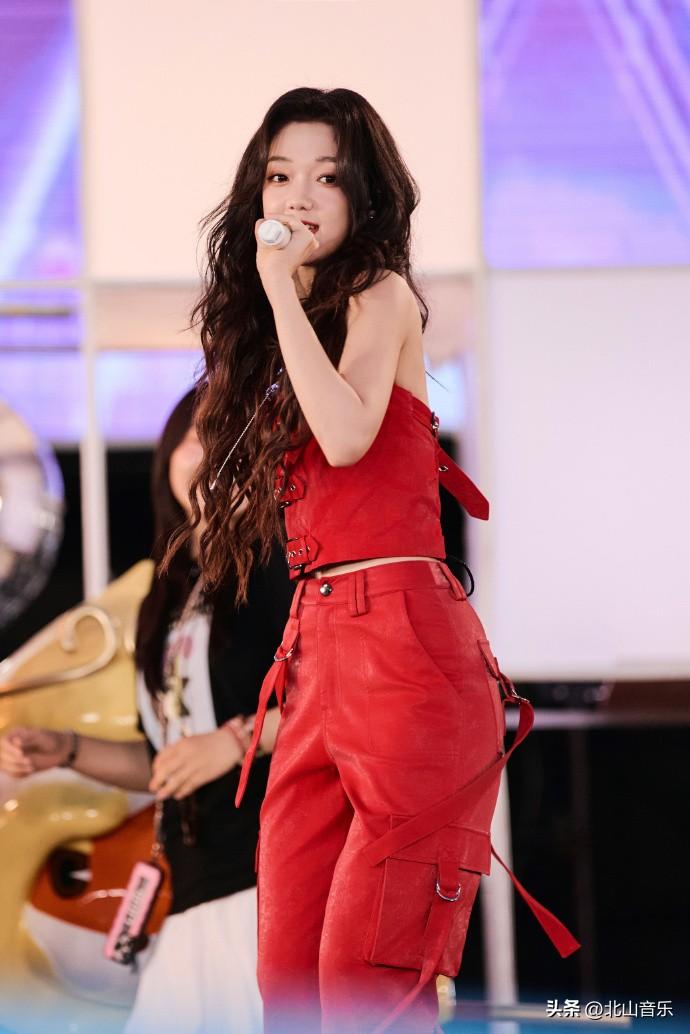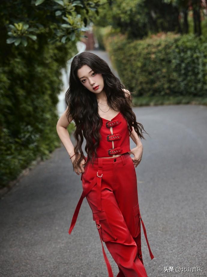 希林娜依高演唱会红色套装,又酷又飒