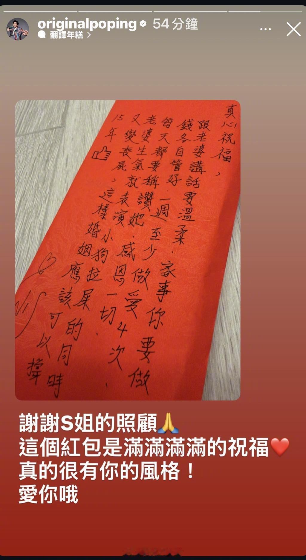 台媒曝小S给陈汉典的红包不是1万6,是超过10万....吴宗宪给陈汉典封200万。。记者询问陈汉典经纪人,小S所包的红包金额并非当时所说的16000元,而是高达10万元台币。小S在红包袋上写满祝福和叮嘱陈汉典婚后的必做清单,「跟老婆讲话要温柔,家事你要做,钱各自管好,一周至少做爱4次,每天都要称赞她,感恩一切,老婆生气就表演小狗拉屎的同时又变丧尸,这样婚姻可以撑15年!陈汉典晒小S给的红包小S给陈汉典的婚后建议