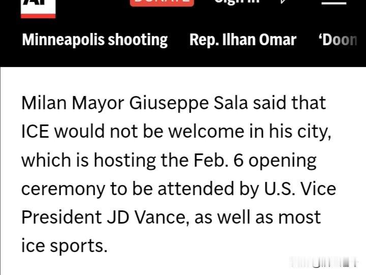 @头条号 @今日头条 睁大你们的眼睛看清楚这条新闻来源哪里。看不懂英文不是我的错,是你妈你爸的错,是他们没有督促你学好英文。 …………………………………………………… 美国出于安全考虑将派遣美国ICE特工参与即将在意大利开幕的冬奥会。 万斯届时也将会参加安保工作。 意大利米兰市长表态:这些武装分子携带武器闯入家园杀害无辜民众,米兰不欢迎他们。