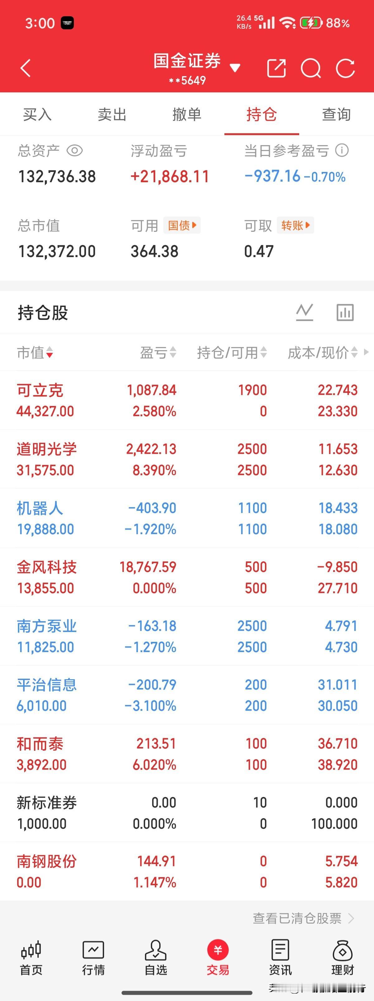 十万想变百万。下午加了道明叔,还是金风给力,卖飞了。 大盘环境就是仓位控制,30
