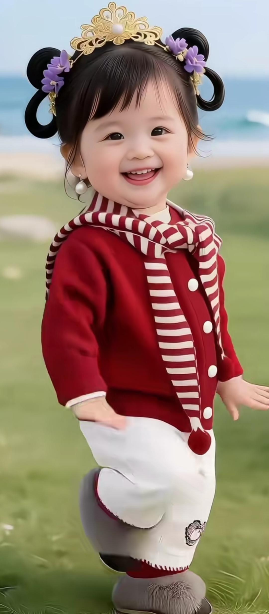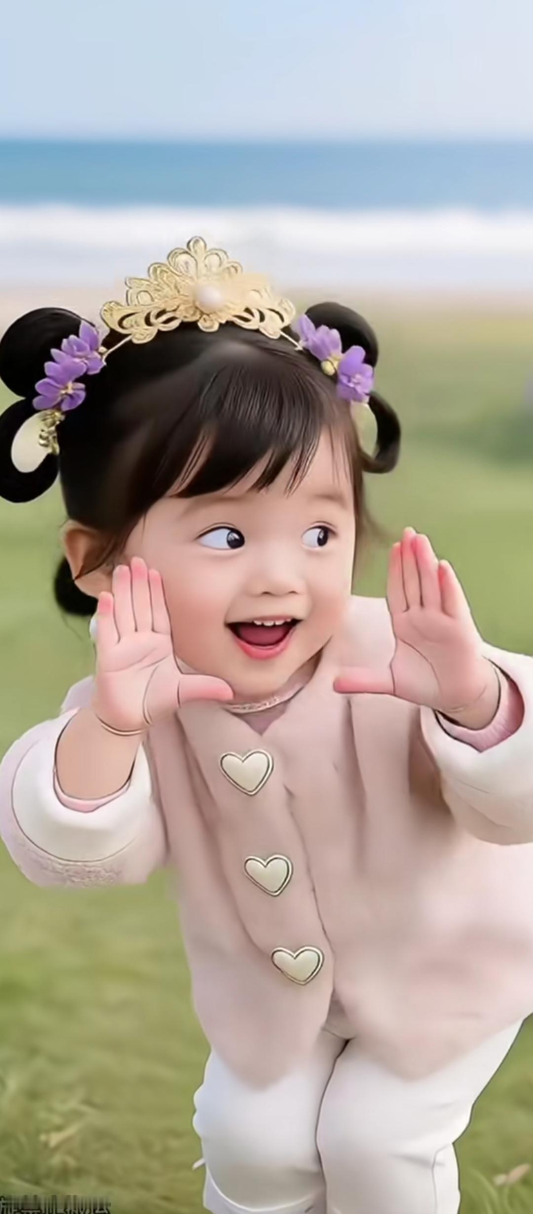 萌娃嬉戏,头饰添可爱!🌊👧💖