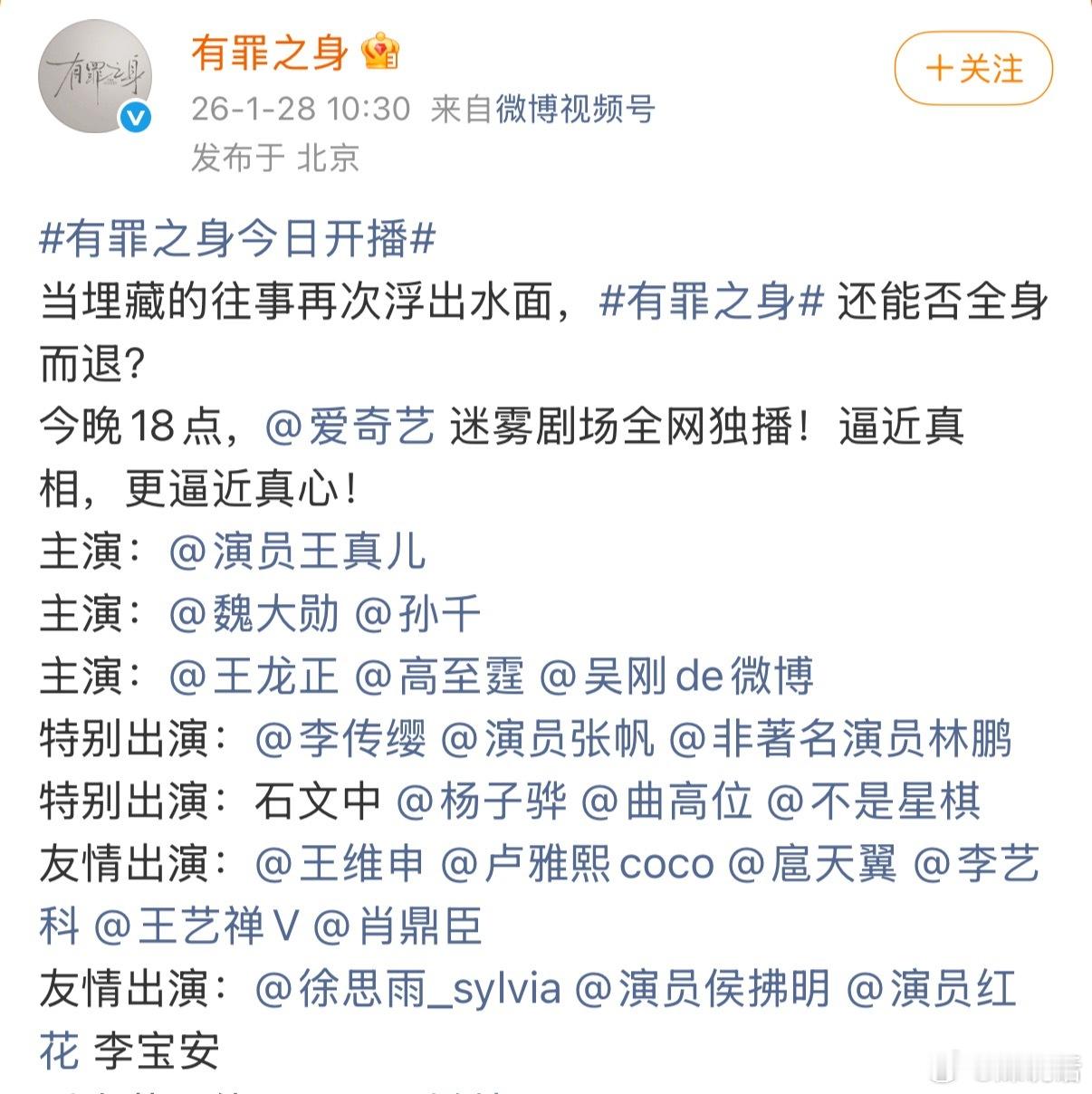 王真儿压番魏大勋孙千 《有罪之身》今晚开播,王真儿空降一番,结果魏大勋粉丝在感谢她友情出演