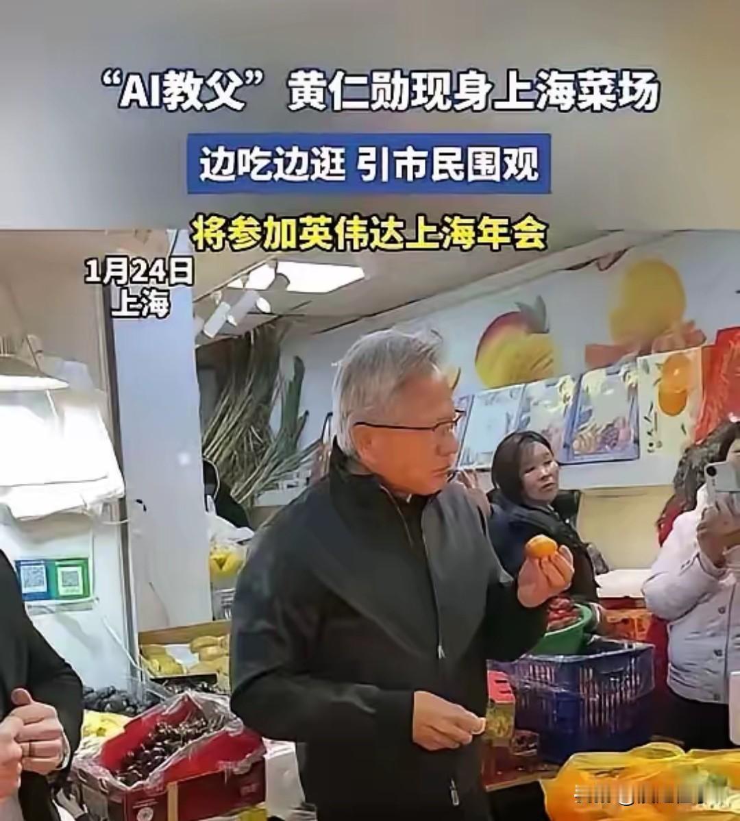 黄仁勋上海扮亲民 实则为芯片市场谋利 黄仁勋上海逛菜场造亲民形象引热议。 美籍华裔的英伟达创始人黄仁勋,2026年1月首度来华首站落地上海,现身锦德菜市场体验市井生活,随后视察英伟达张江新办公室,后续还将前往北京、深圳参加公司年会及供应商答谢会。其全程走接地气路线打造亲民人设,因一张华人脸,部分网友忽略其美国商人的核心身份,黄仁勋自小在美国长大,其所有商业动作均围绕美国企业利益展开。 2026年1月最新消息,美国将英伟达H200芯片对华出口政策改为逐案审查,附加销量限制、第三方审核等多重苛刻条件。此前英伟达配合美方实施芯片封锁,联手掐断中国芯片供应链,如今国产芯片实现技术突破,华为、寒武纪等企业产品性能逼近英伟达同款,英伟达在华市场份额从95%跌至8%,库存积压问题严重。 黄仁勋的亲民操作就是糊弄市场的花把式,核心目的是推动H200芯片在华合规落地,挽回流失的市场份额。国内仍有一小撮人扎堆为其行为瞎吹造势,却看不清其背后的商业算计。中国芯片产业的自主化进程已步入快车道,外企靠表面功夫想抢占市场,终究抵不过国产技术的硬实力。 谈谈你对黄仁勋上海亲民操作的真实看法?评论区来聊聊。