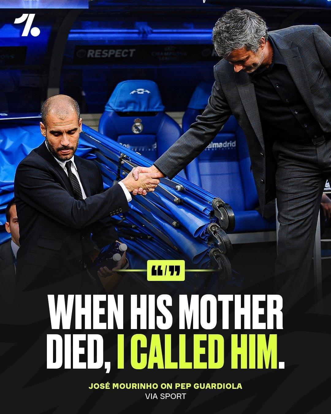 穆里尼奥公开了他与昔日对手佩普·瓜迪奥拉之间一段出人意料的关系 🤝 在球场上,他们是最尖锐的对立面。 战术、理念、性格,几乎处处相反。 在国家德比、欧冠赛场,他们的交锋塑造了一个时代的紧张与张力。 但在球场之外,故事却完全不同。 穆里尼奥近日谈起瓜迪奥拉时,罕见地放下了锋芒,语气平静而真诚: 🗣️“我属于那种认为,足球场上的事情就应该留在球场上的教练。我对瓜迪奥拉,只有美好的回忆和感情。” 很少有人知道,这两位“宿敌”,在彼此人生与职业的低谷时,曾私下互相安慰、彼此尊重。 没有媒体,没有话题,只有同行之间的理解。 🫶 “我之所以分享这些,是因为我现在有这个机会。但我对他,真的只有美好的回忆——因为我们曾一起工作过。” 他们代表了完全不同的足球哲学,也曾将彼此逼到极限。 但正是这种对抗,让对方变得更强。 场上是对手, 场下是同行, 更是那个时代,彼此成就的传奇。 有些尊重,不需要公开; 但一旦说出口,反而更有力量。 穆里尼奥
