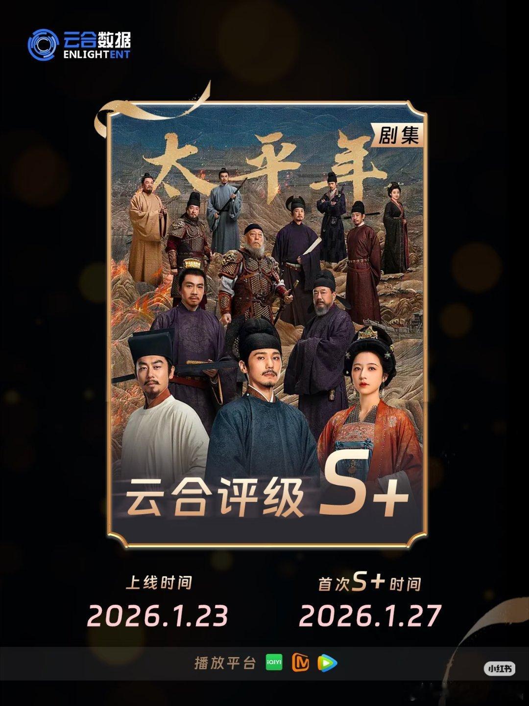 爱奇艺、芒果 TV 、腾讯视频拼播《太平年》2026年1月23日上线,2026年1月27日首次云合评级达到 S +。