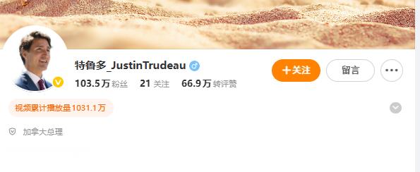 说一个冷知识,微博上的是苏纳克,微博上的是特鲁多是因为微博会员欠费了吗?