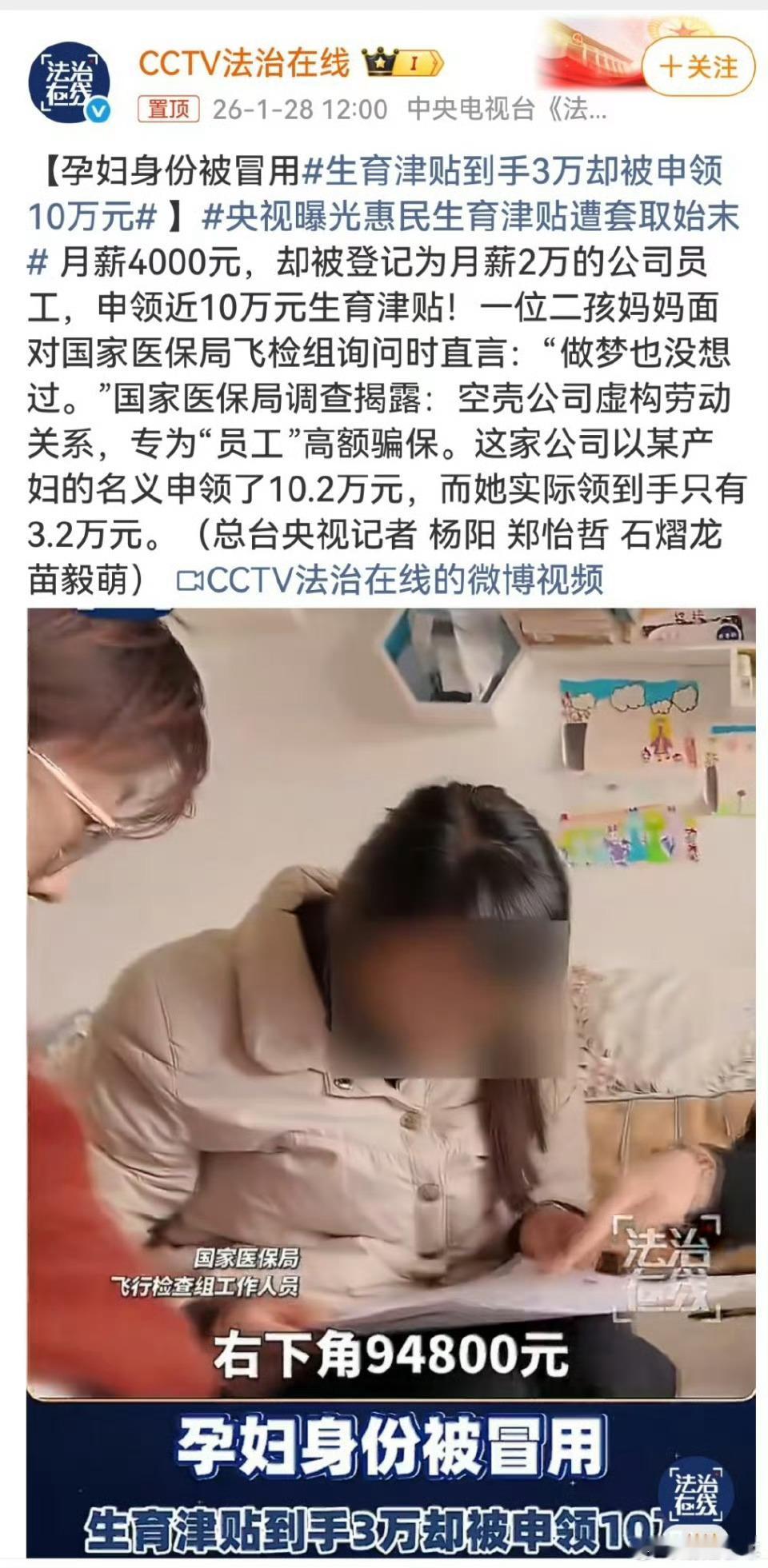 生育津贴到手3万却被申领10万元这个太可恶了!!!!这种骗国家钱的请务必严惩!!