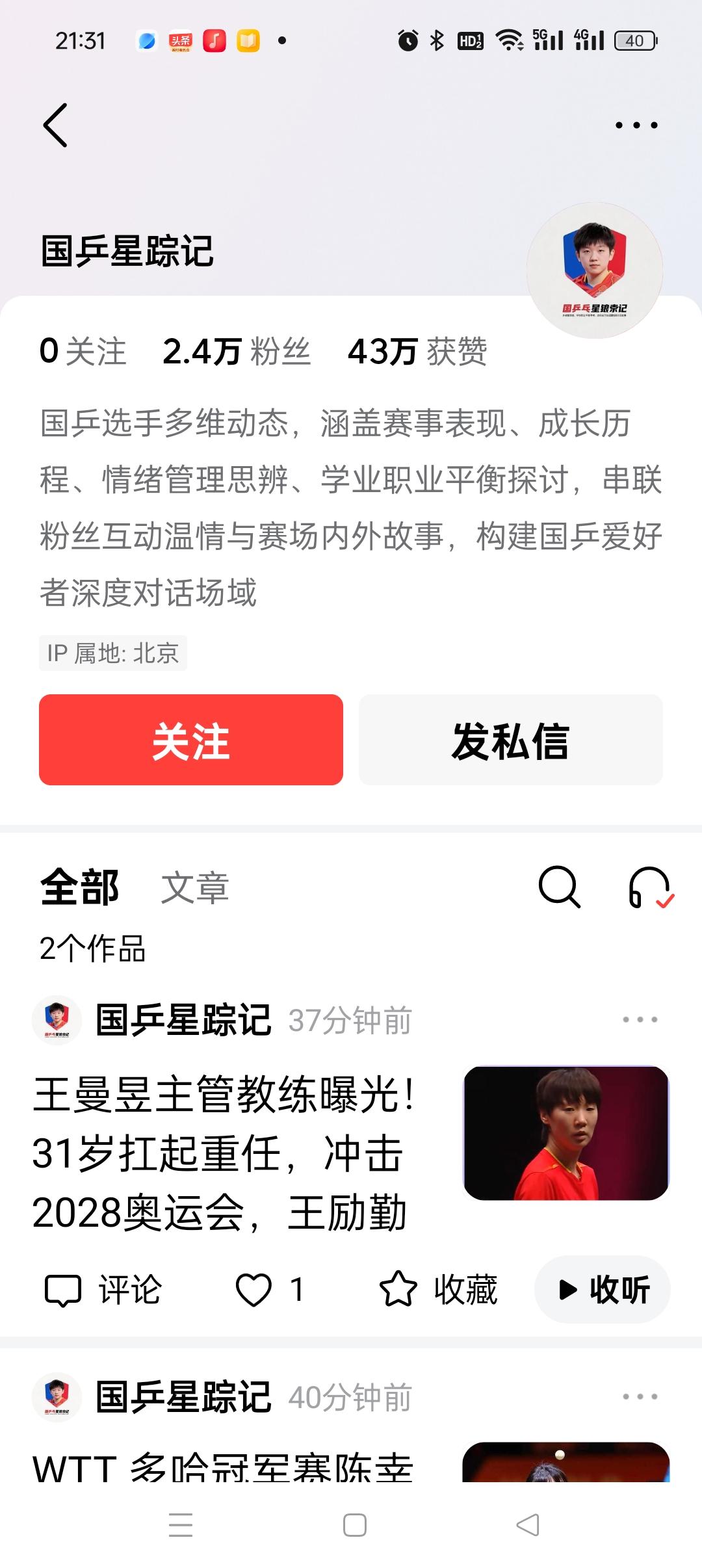 这个叫‘’国乒新踪记‘’的大家要小心了,他有2.2万粉丝,是个抄袭大户。今天一天抄袭我朋友4篇。