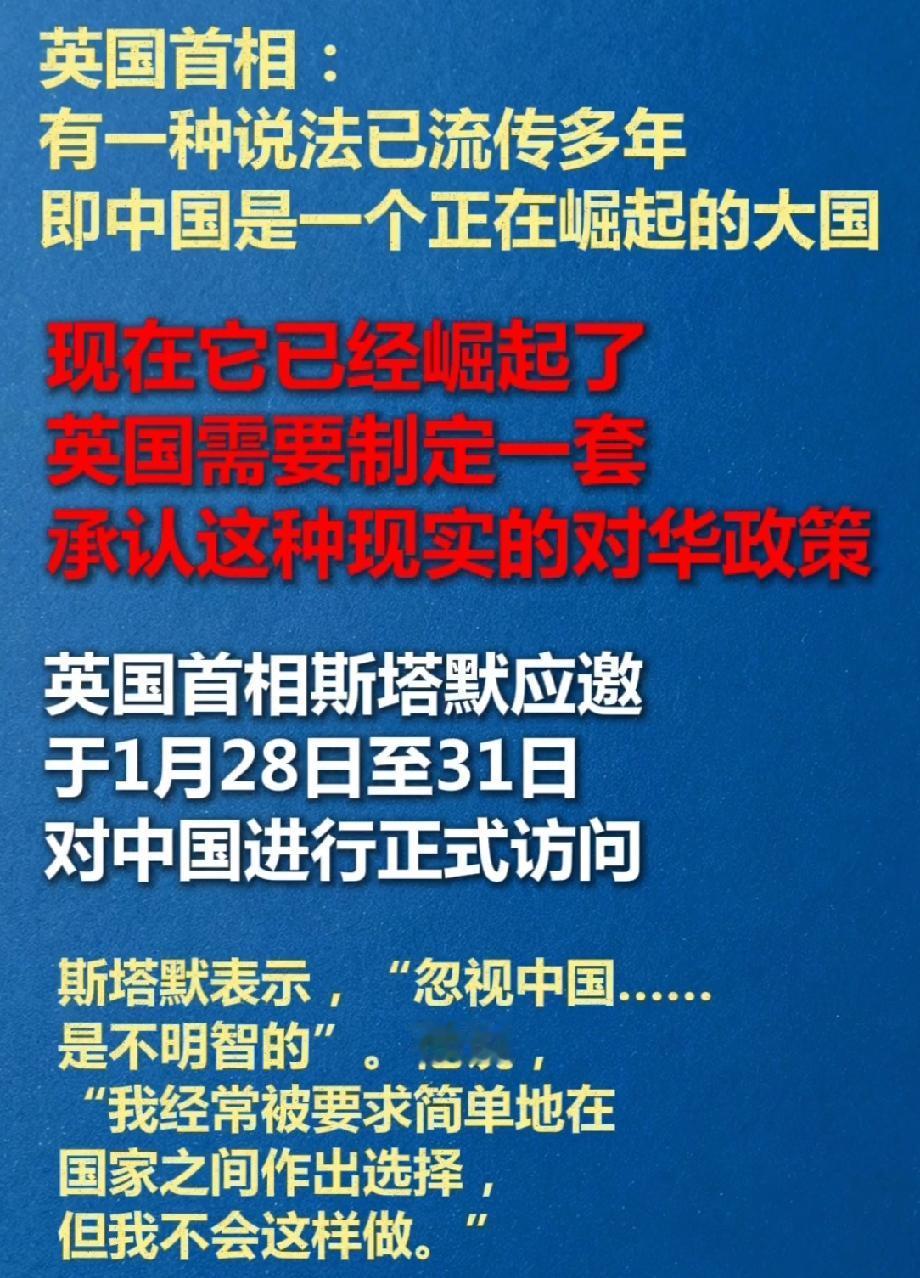 英国首相:中国已经崛起 路透社报道英国首相斯塔默访华,直言“中国已经崛起”,这可是英国对中国发展现实的清醒认知。这也是英首相八年来首次访华,斯塔默决心改善英中关系。 他带着50多家大企业高管来,就是想和中国好好合作。英国脱欧后经济不好,高通胀、高能源价格让民众日子紧巴。而中英合作好处多,像中国风电技术能让英能源项目成本降三成。 此前英国跟着美国对华设限,丢了市场机会。如今中英贸易数据和合作岗位让英国看清现实,民调显示对中国友好的英国人多了8个百分点。这也说明,合作才是正道。