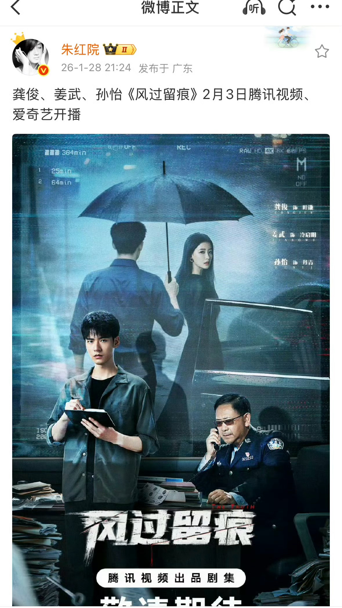 龚俊的《风过留痕》这次是真的要来了,2月初,真的是真瓜
