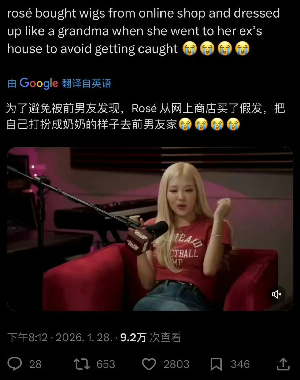 BLACKPINK朴彩英自曝曾连续六个月扮成老奶奶去约会为了避免被前男友发现,专门买了假发,把自己打扮成老奶奶的样子去前男友家