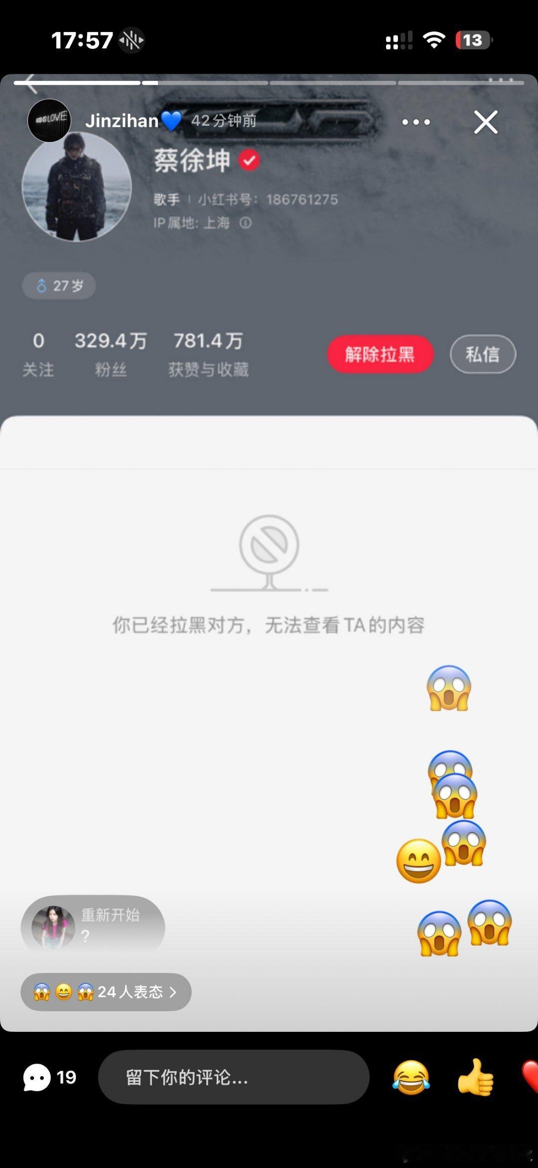 金子涵在小某书把蔡徐坤拉.黑了,还发了一个中指蔡徐坤曾经是青你2的PD,我对金子涵的印象只有青春有你的play组,这是发生了什么?金子涵拉黑蔡徐坤