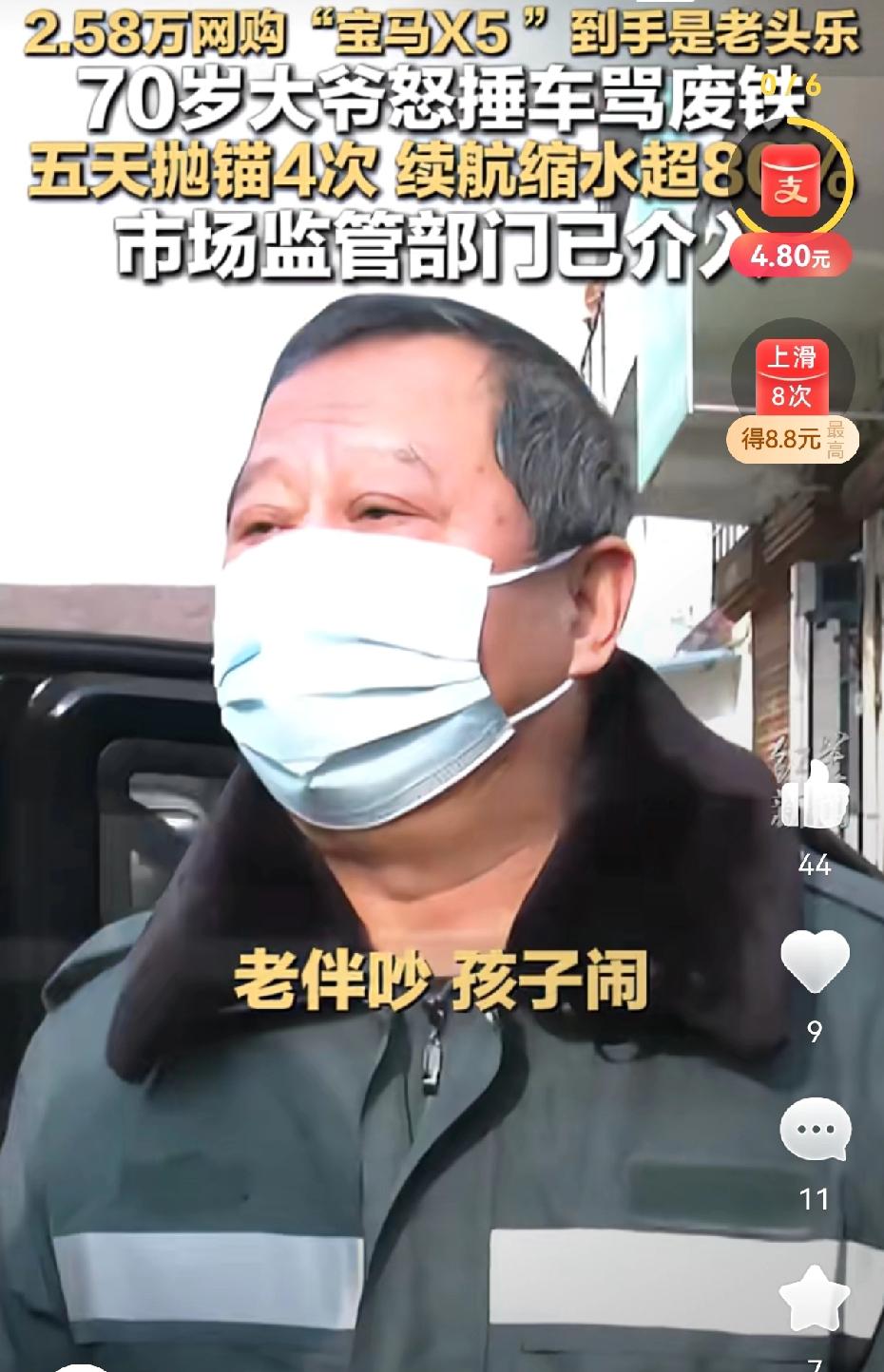 2.58万买“宝马X5” 到手变老头乐! 这骗局专坑老年人! 五天抛锚4次, 宣传称续航270公里 实际行驶50公里不到 续航直接缩水80%, 大爷气得当场把车砸成废铁! 我就想问: 骗子到底哪来的胆子, 敢把“老头乐”包装成“宝马X5”卖? 我总结了一下, 这类骗子专挑老年人下手: 大爷不懂车、不懂网购套路, 被“低价豪车”的噱头一骗就上钩。 这种骗局就是瞄准了 老年人信息差, 把他们当成待宰的羔羊。 -另外平台监管也是形同虚设: 一辆连正规合格证都没有的 三无产品,是怎么在平台上 挂着“宝马X5”的旗号卖出去的? 平台难道没有审核机制吗? 希望大家把此事扩散出去, 告诉我们的爸爸妈妈、爷爷奶奶, 不要成为下一个“被骗的大爷”! 现在骗子的套路越来越野, 我们的警惕性必须要更高才行! 你们说呢?