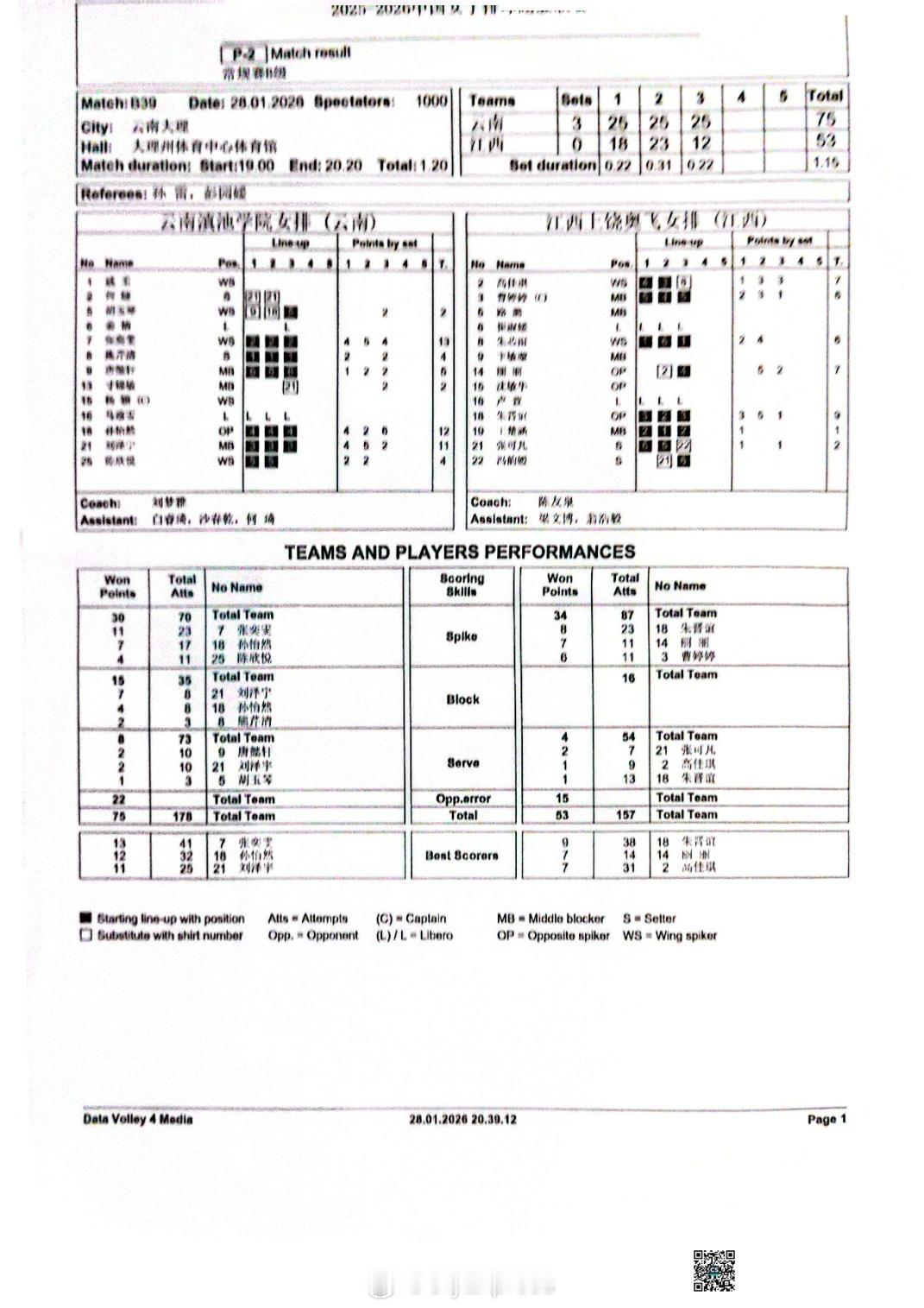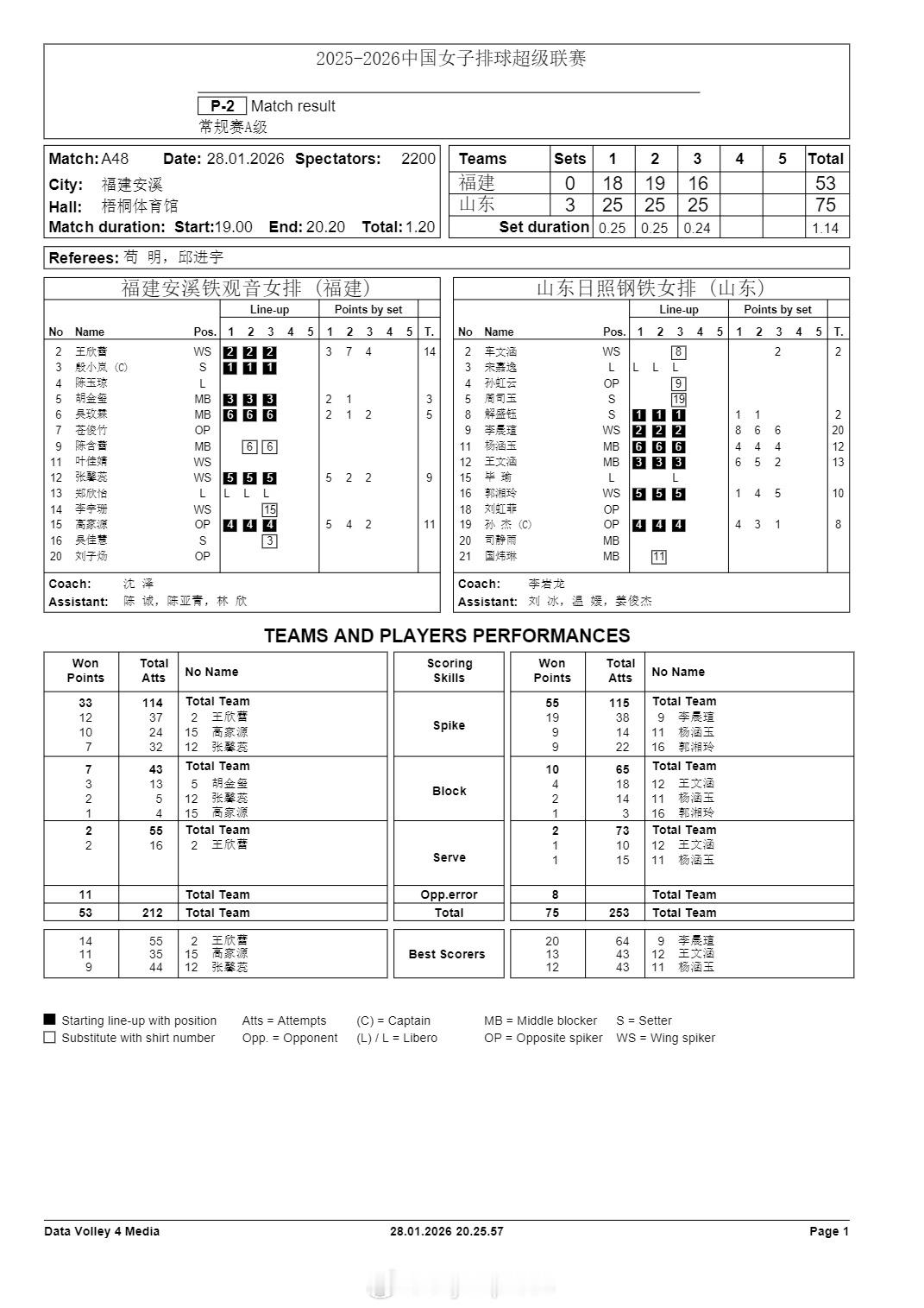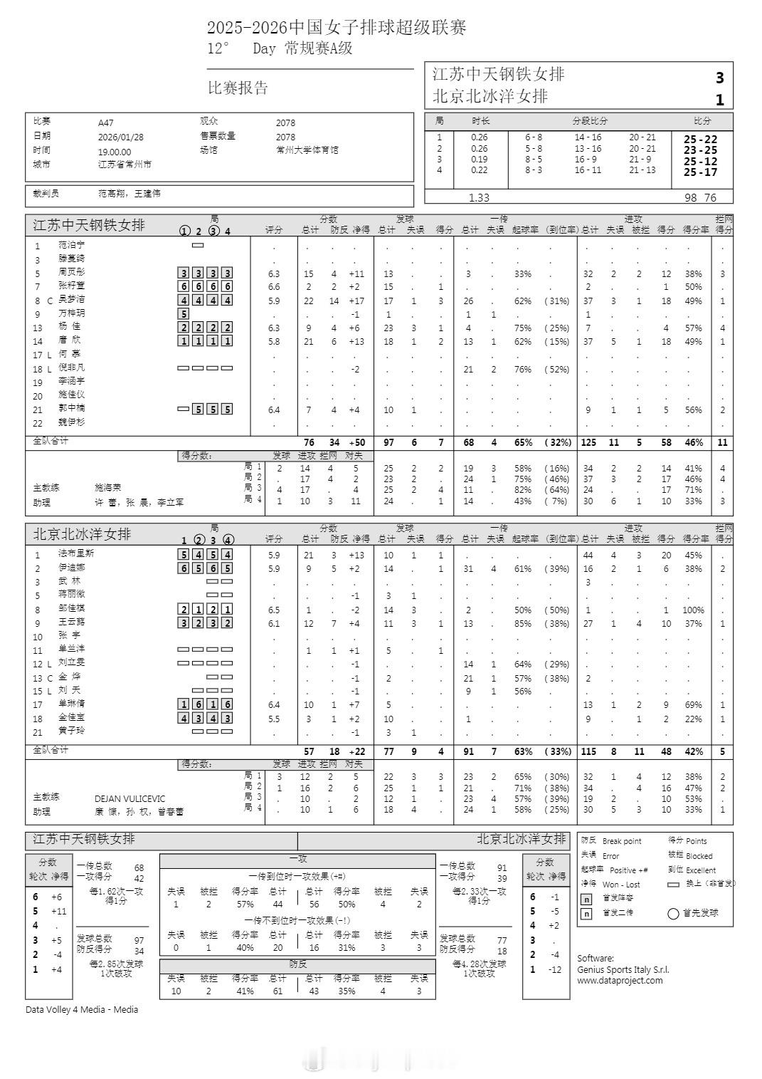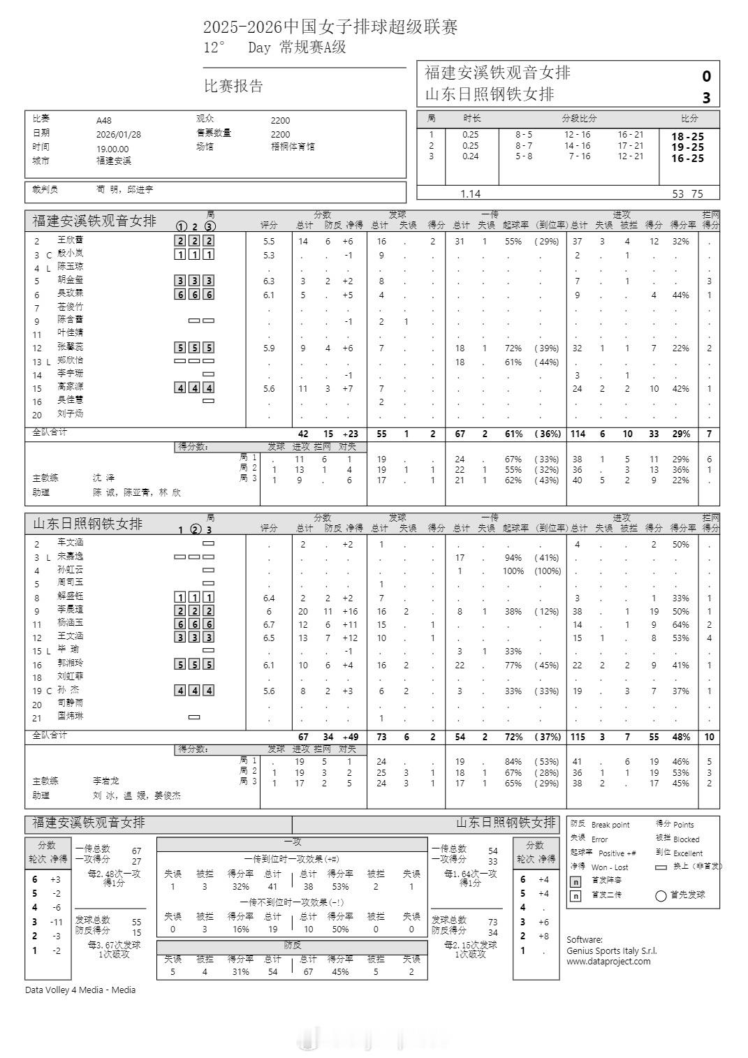 排超联赛 1月28日,女排联赛技术统计。