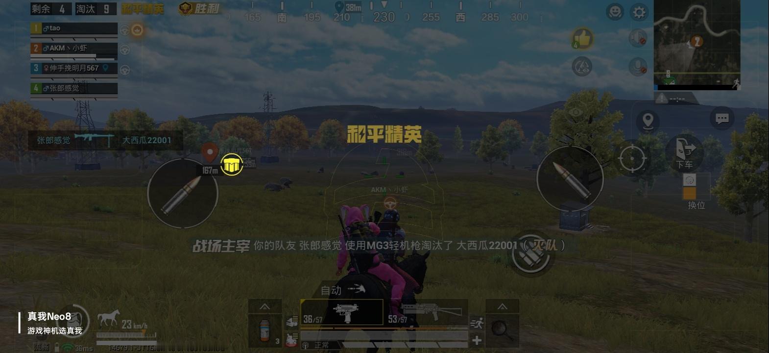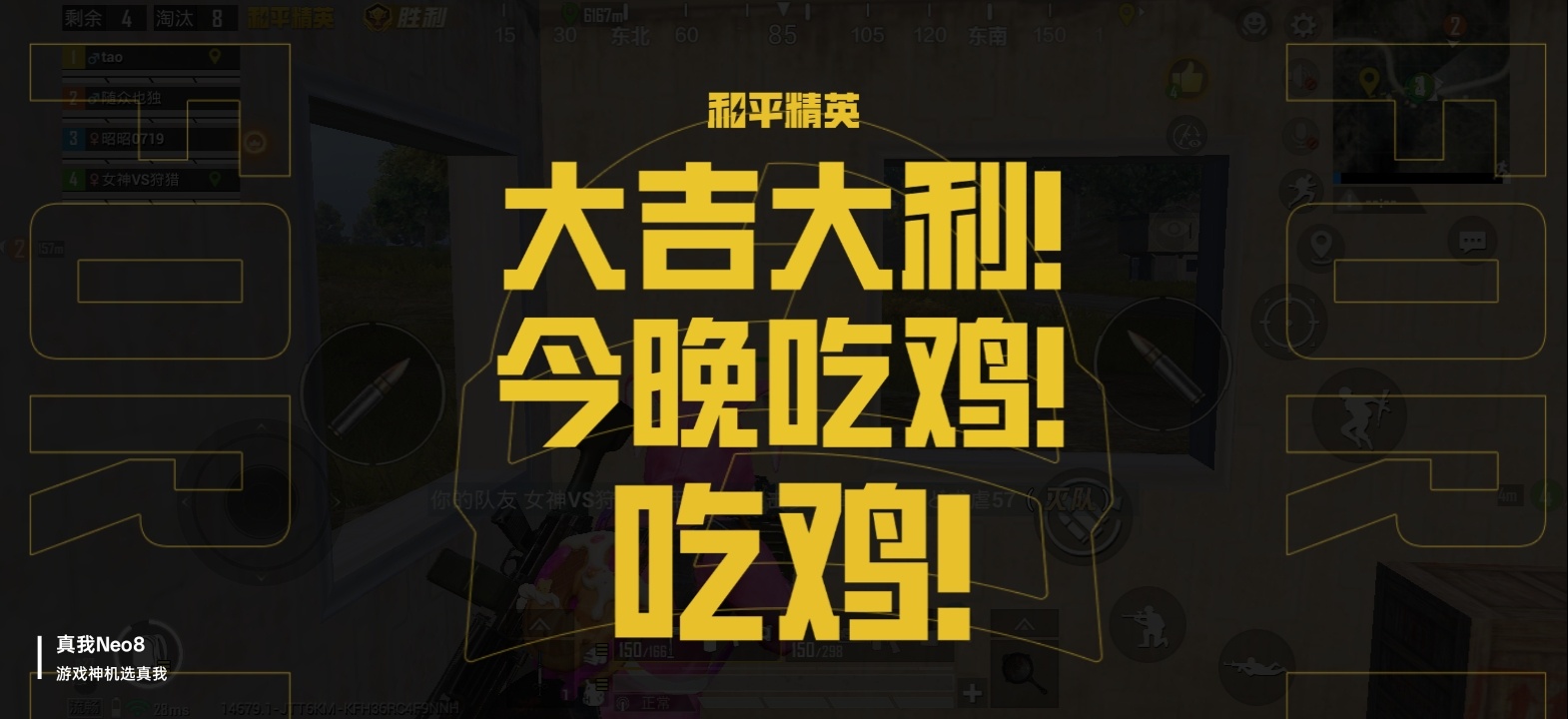 真我Neo8吃鸡是真的稳~虽然我本身技术就很好,再加上如此神机在手,连续多把稳稳吃鸡。165Hz超高刷够爽,钢枪丝滑流畅快人亿步!
