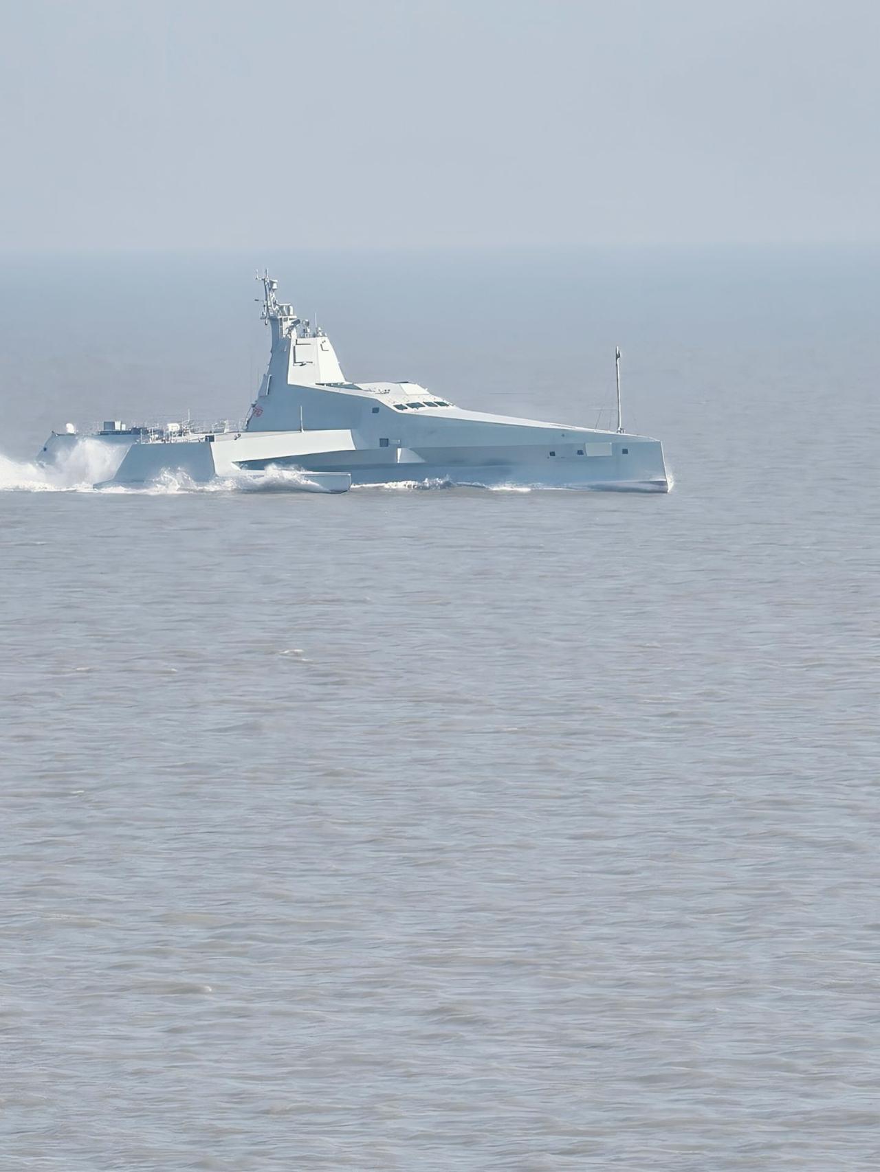 这个无人三体船消失很久了,现在又被拍到出海航行试验,看来项目的推进并不是非常顺利。海军现在在无人作战上的投入方向很多,策略就是广撒网、捞大鱼,什么方向都不耽误,最后选择最有力的方向发力。