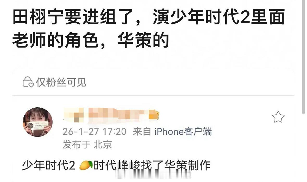 田栩宁要进组了,演少年时代2里面老师的角色?感觉不像真的,还是记性吃瓜吧