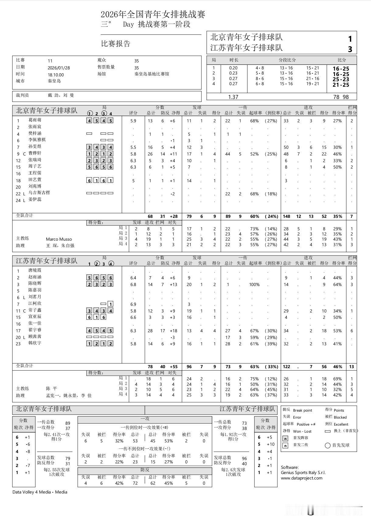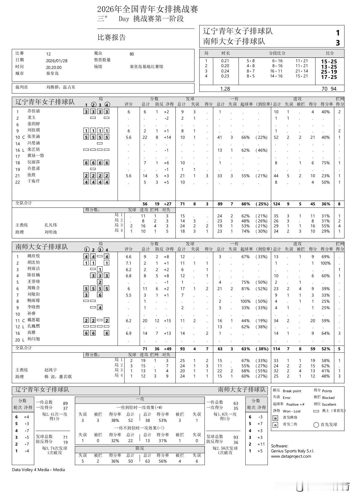 福建青年女排杀出“小庄宇珊”:身高1米86的队长林诗晴。这位主攻小将昨日对阵天津砍下26分,今日迎战强敌山东再次豪取22分,帮助福建女排截至目前取得全胜。江苏青年女排的翟宇睿与北京队的国青队队友曹烨轩狭路相逢,翟宇睿拿到28分,曹烨轩拿到26分,不过翟宇睿帮手多,尤其同样是国青队友的陈晓辉14扣9中3拦网2发球拿下14分。辽宁青年女排1-3南师大女排,也是截至目前唯一从南师大女排身上拿下一局的球队,1米85的张美涵拿下22分,看来辽宁队后继有人,而南师大头号得分手戴思聪34扣20中拿下20分,戴思聪真值得排超联赛所有球队考虑,尤其天津女排,真不妨招入戴思聪。