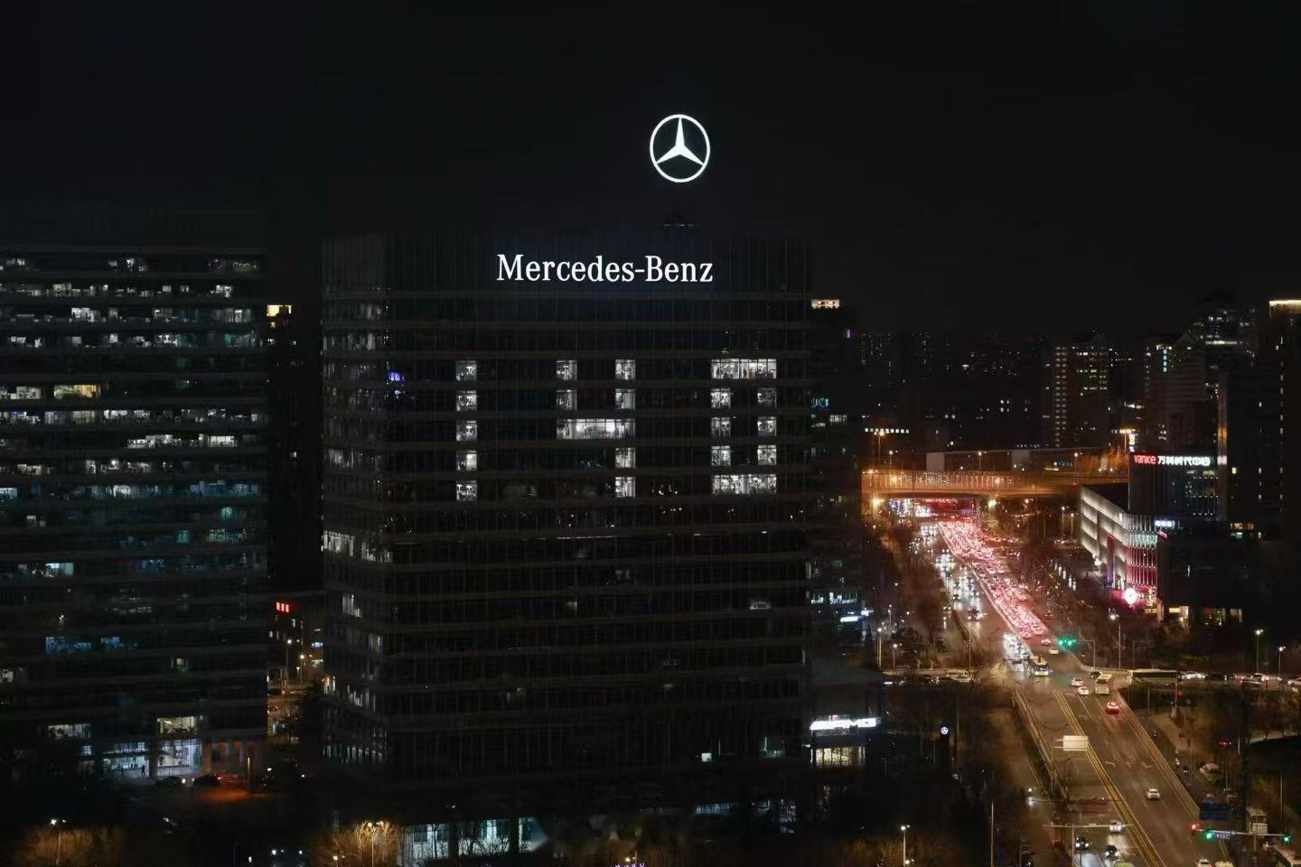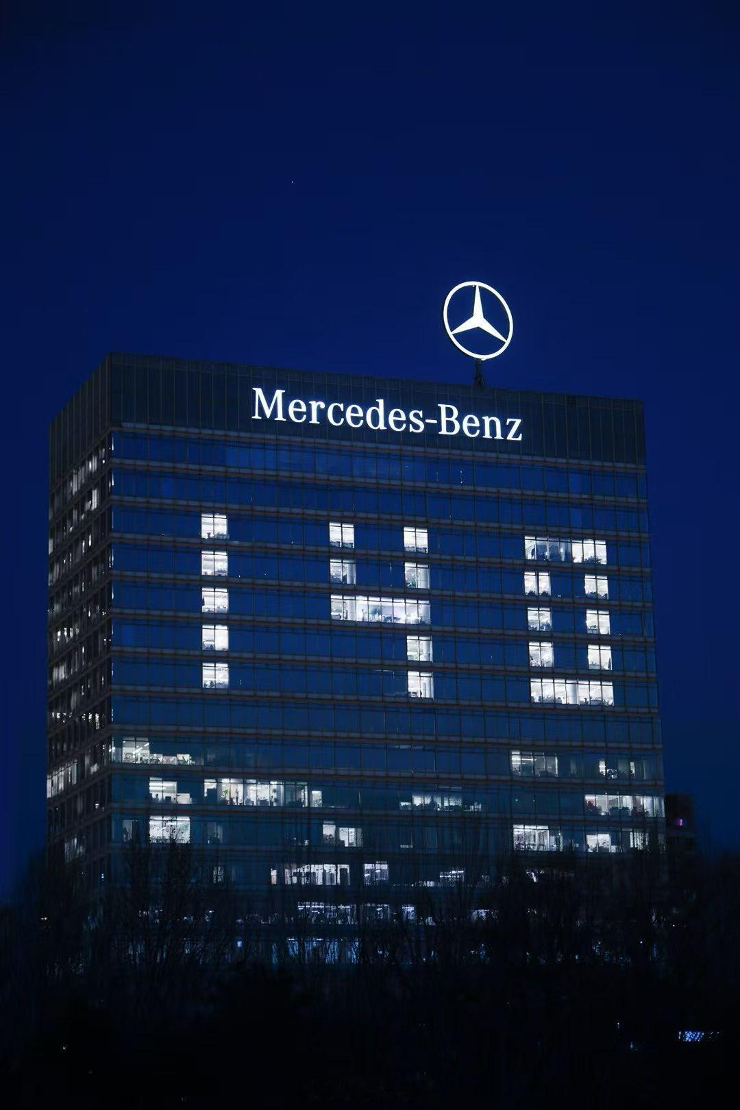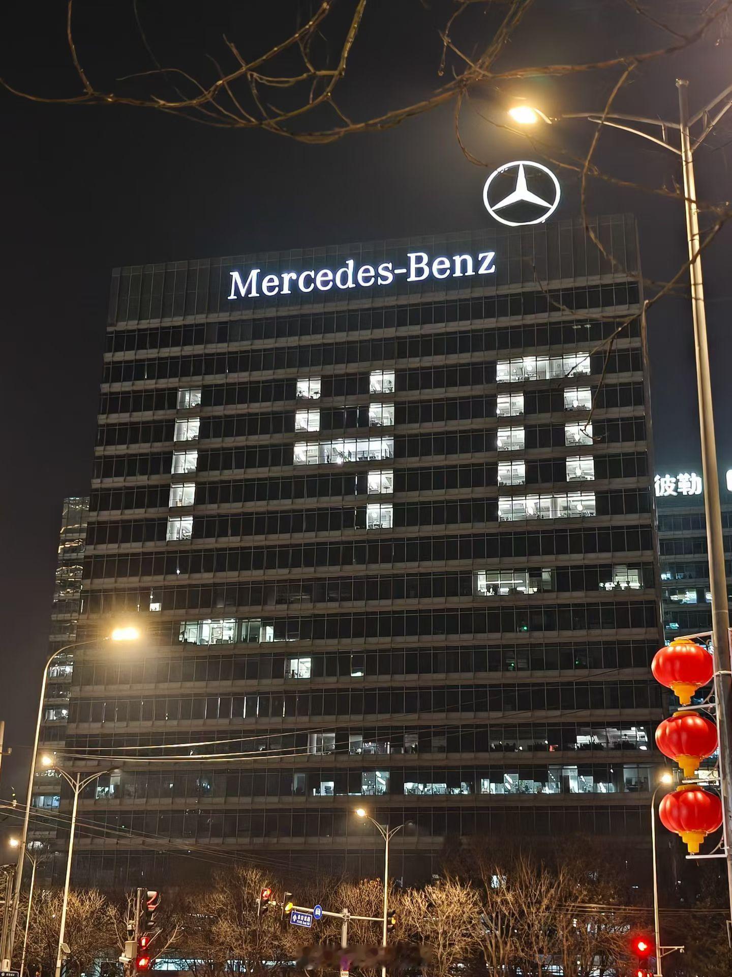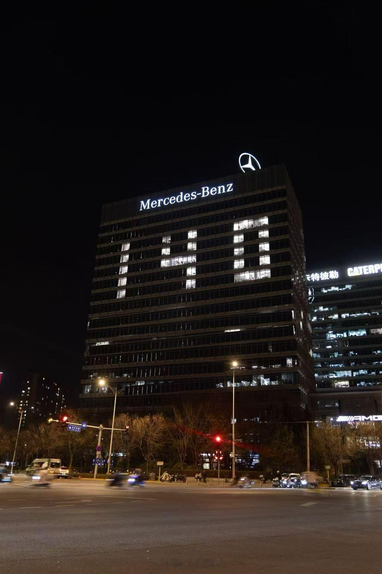 今天北京的梅赛德斯 - 奔驰大厦奔驰140年 的灯开好了