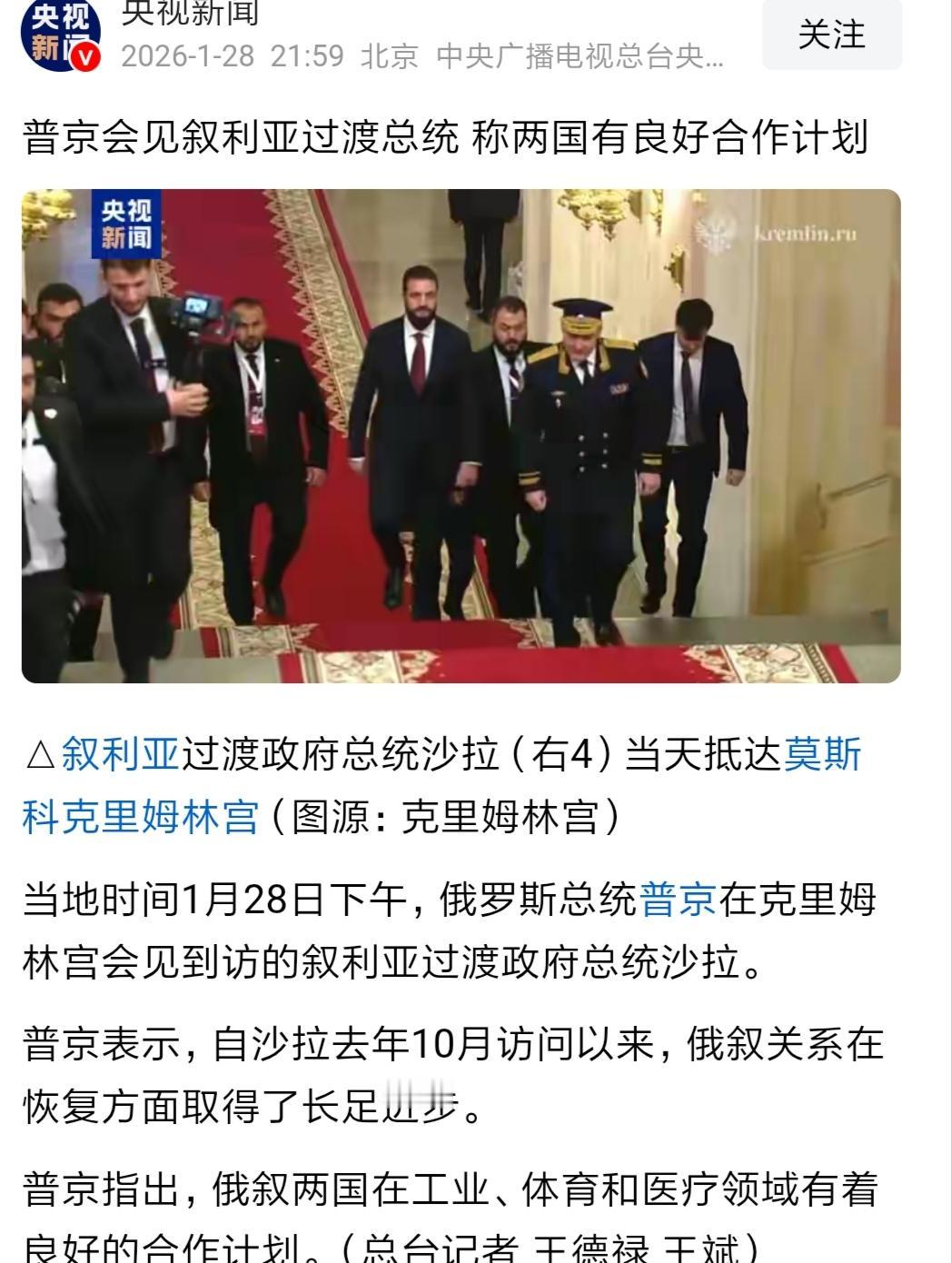 巴沙尔还能安心在别墅里玩游戏吗?看看他的敌人,又来访问他的朋友了,第2次。 朱拉尼三个月内访问大鹅两次,令老普十分开心。 普J强调,“俄方对接待沙拉总统感到开心,俄叙双边关系取得进展,经济合作重拾势头”。 巴沙尔被交出去,只是时间问题。 特朗普背叛了多年盟友库尔德人,还想让朱拉尼置库尔德人于死地。老普也是如此。 朱拉尼怎么这么幸运?把敌人的朋友都搞定了。 巴沙尔跟他那美貌如花的妻子阿斯玛应该早做打算,如果真找不到新地方可去,不如自我了断,不用受罪了。 巴沙尔的妻子阿斯玛应该明白,女人要被朱拉尼抓住会很惨的。想想库尔德女兵是怎么被朱拉尼当局残杀!