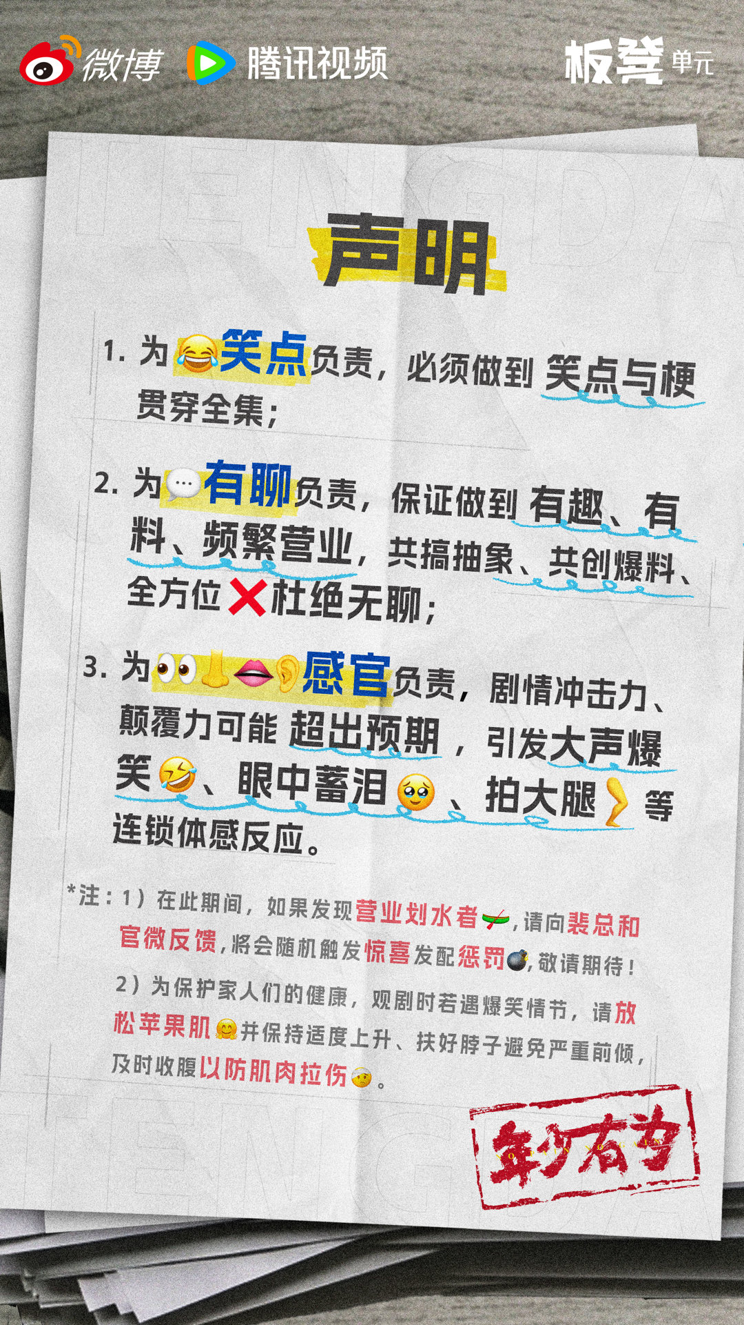 彭昱畅发声明电视剧年少有为 这年头,连剧宣都开始“内卷”了!《年少有为》让主演们发“笑点声明”,承诺让大家笑足笑够。预告里更是神仙剧情不断:老板变着法儿给员工送钱,职场PUA结果被反向制裁……1月31号起,我的快乐源泉就靠它了,过年喜剧首选!