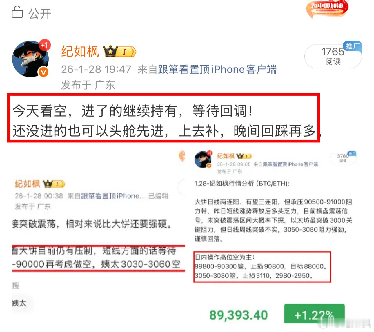 整体思路本来就是先看空的,再接多的,9万关口需要反复测试才会彻底站稳重新前期压力位91000,自从昨晚到今天也就晚上回调稍微大一点。也是正常波动,有回踩才走上车的机会,同时也提醒了89000-89500反手去多,毕竟顺势而为最重要,接下来等待凌晨反弹行情,冲破91000还有空间,下方暂时关注88500支撑,破位的话等87000附近再多。