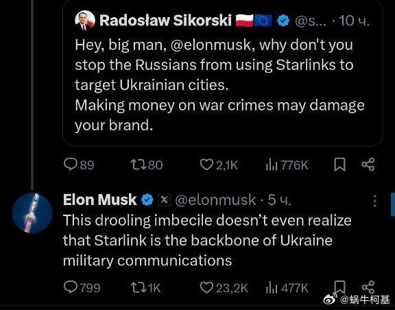 马斯克抨击波兰外长:“这个流口水的白痴甚至都不明白星链是乌克兰军事通信的支柱。”来源:elonmusk俄乌局势新进展特朗普回应是否抓捕普京普京称已无兴趣等乌方从占领区撤出