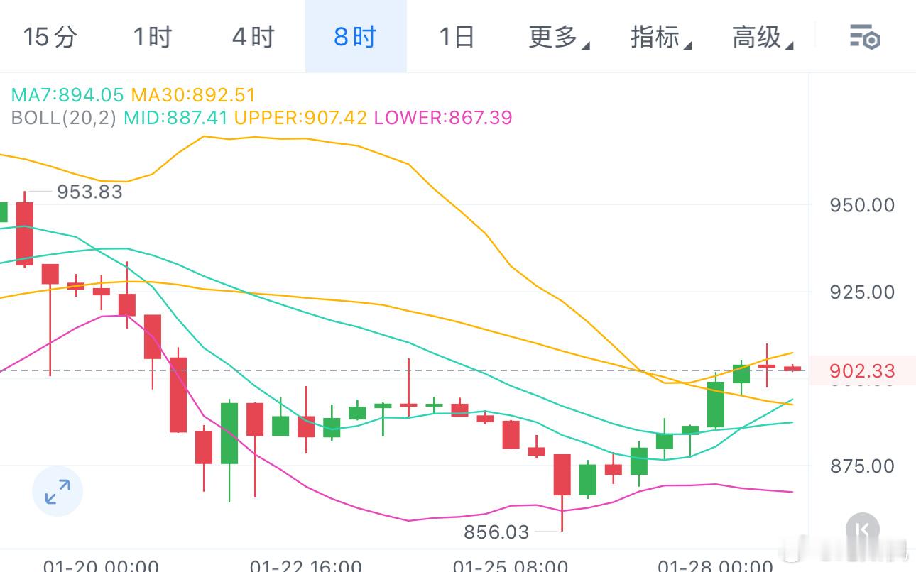 BNB还没上车的,等待回踩890-895也可以多,整体来看走得还是挺稳的,目标上看920-930。