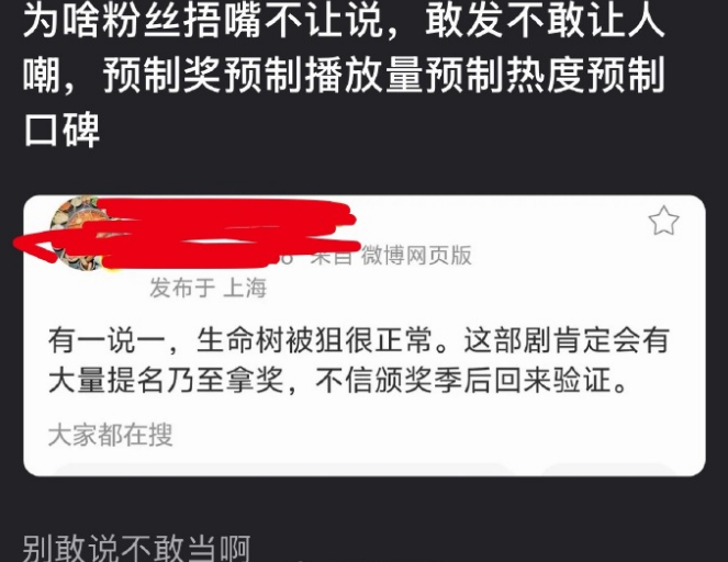 杨紫的生命树,我也是挺看好的,我估计她也是奔着获奖去的,现在看很多家,真的是在防爆杨紫,我觉得前四集,基本上就能定调了
